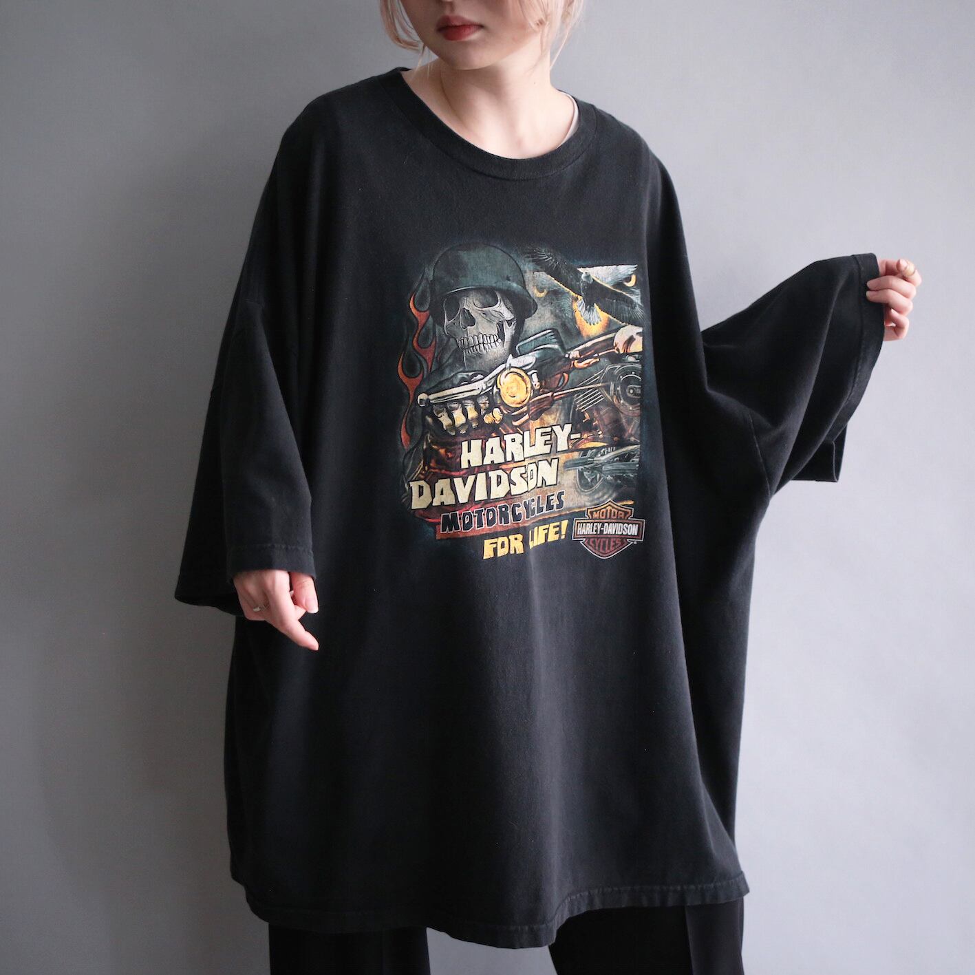 フロントにはバイクにまたがる骸骨に鷹、さらには"HARLEY DAVIDSON"のブランドロゴも加わったグッドプリント◎