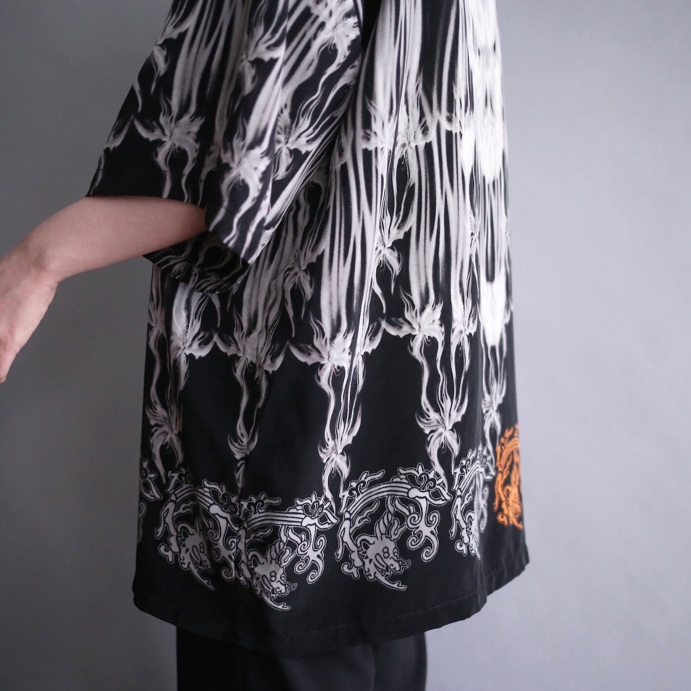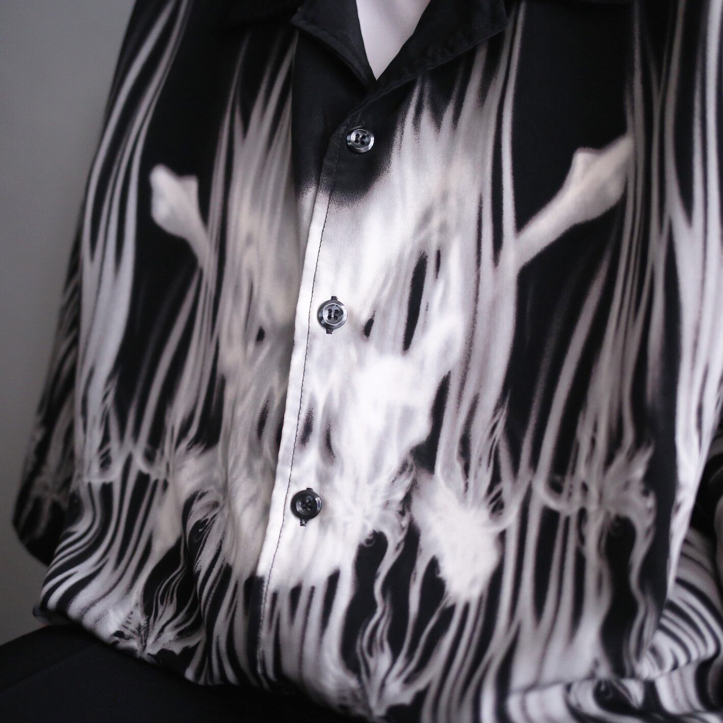"煙"のような柄が全体に広がりダークなエッジ感を与えるデザインシャツ
