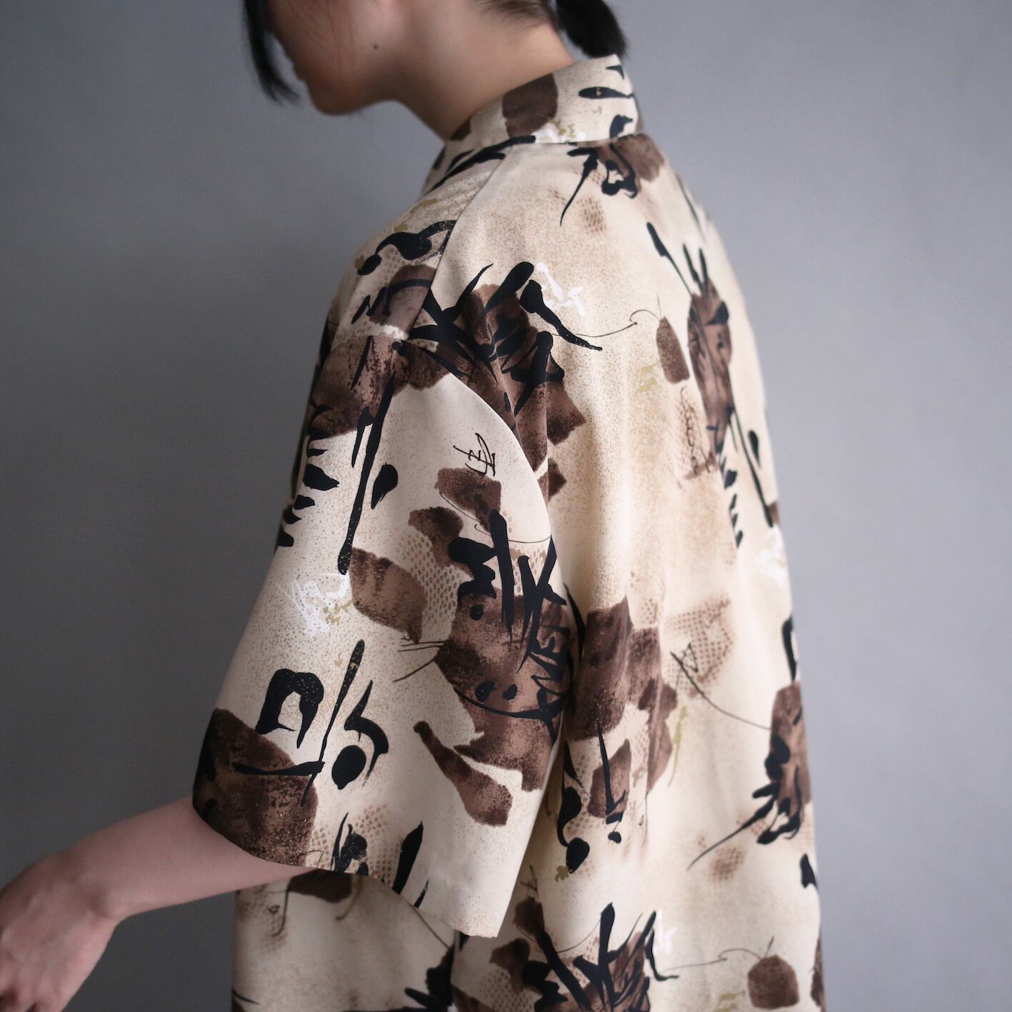 "漢字"を崩したような抽象てきな柄に牛柄のような大判な柄の絶妙〜な組み合わせ、