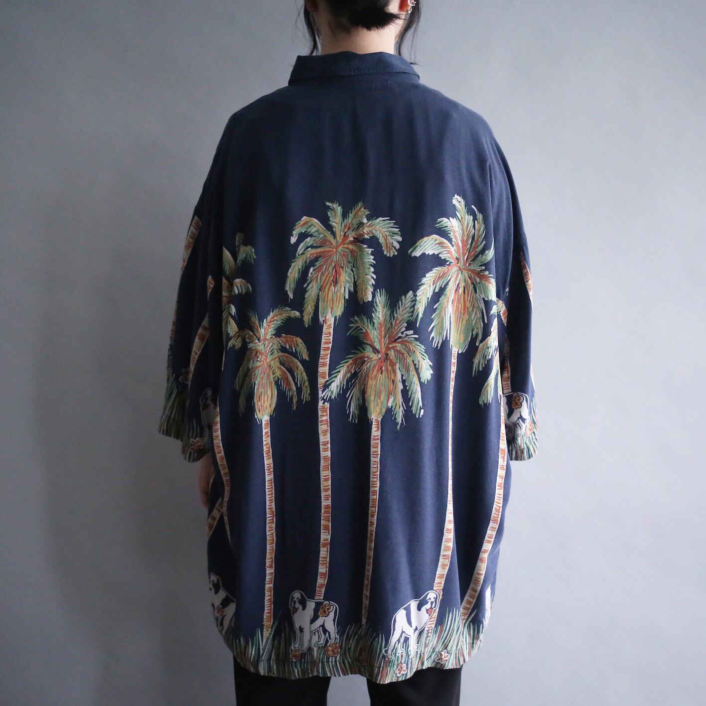 そのオーバーサイズに全く引きを取らないのが大判なヤシの木のグラフィック◎