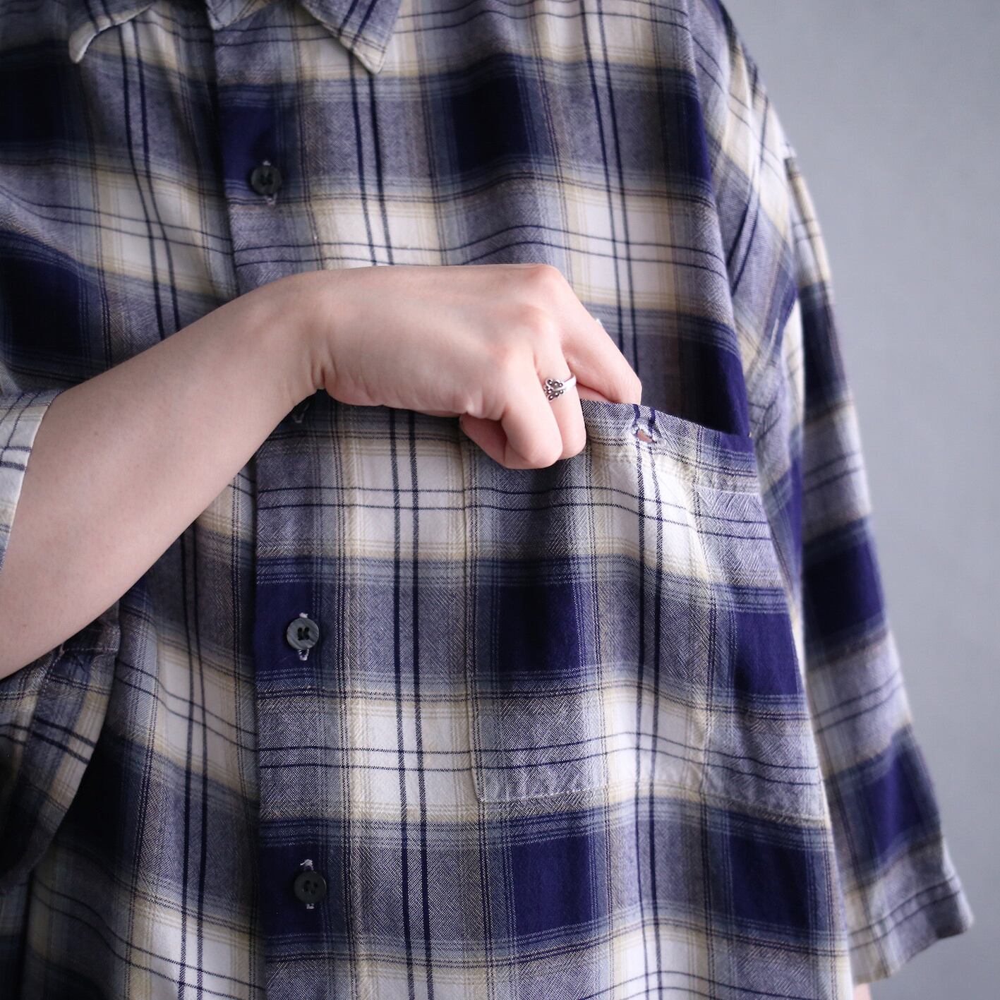 このシャツの柄はまさにその"オンブレチェック"、ネイビーを基調とした"寒色"の絶妙〜な配色◎これは探してもマジで出てこないです!