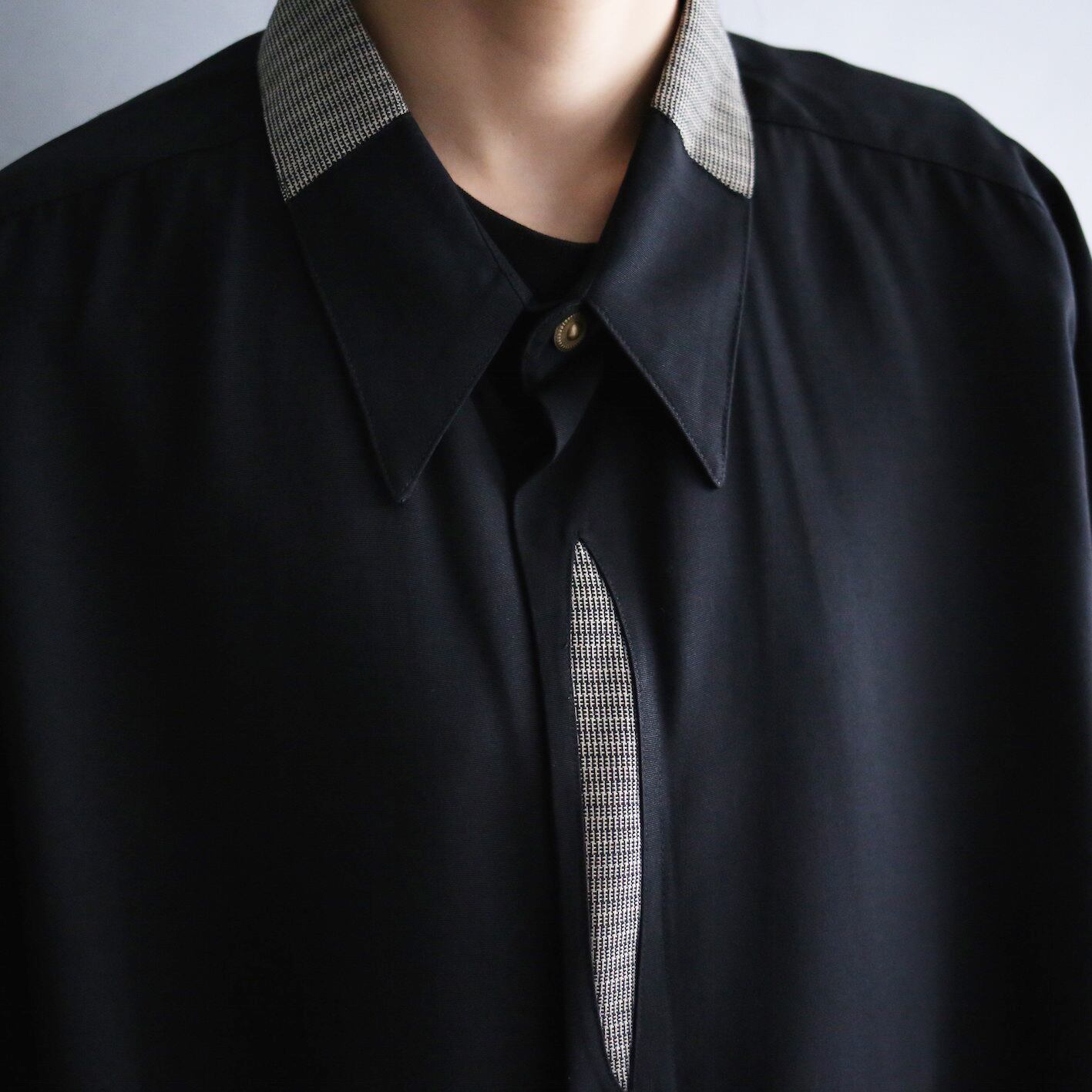 襟と比翼部分に気の利いた切り替えを施したモードデザインシャツ