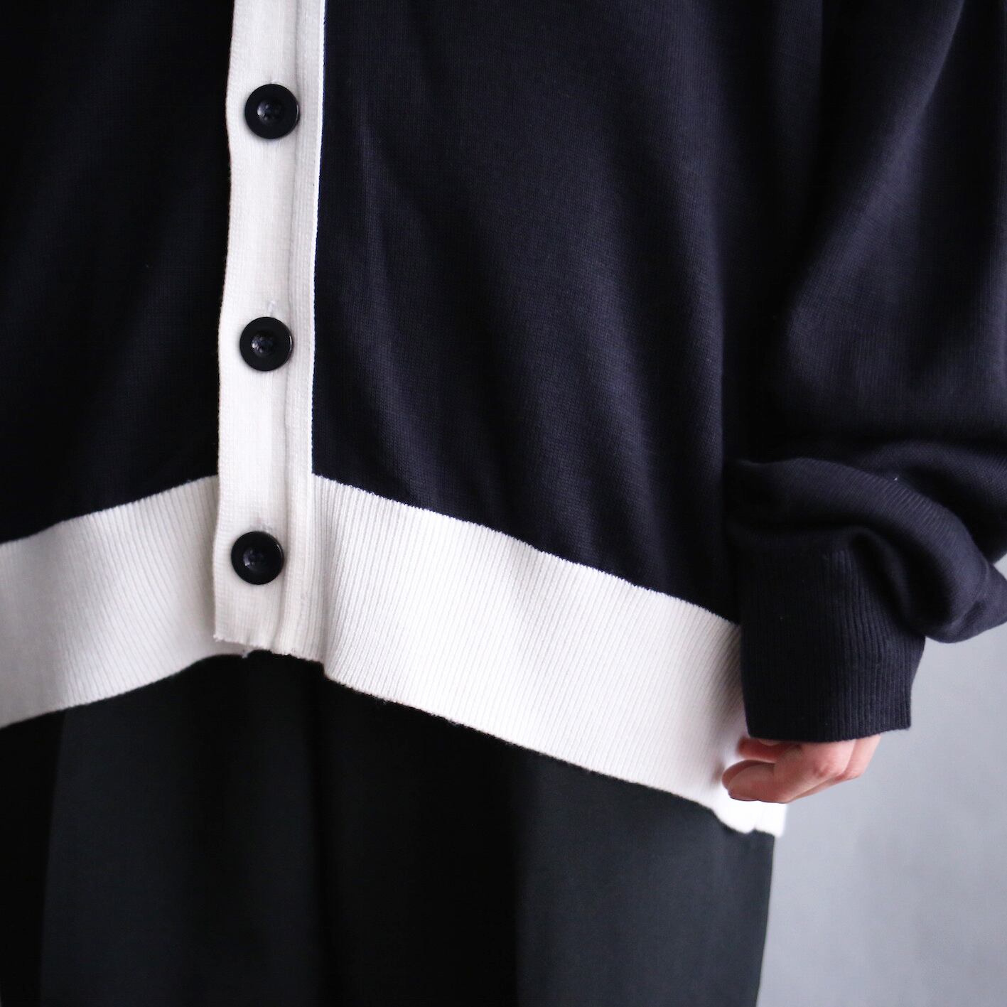 "黒×白"の気の利いた切り替え、ゆったりとしたサイジングのニットカーディガン