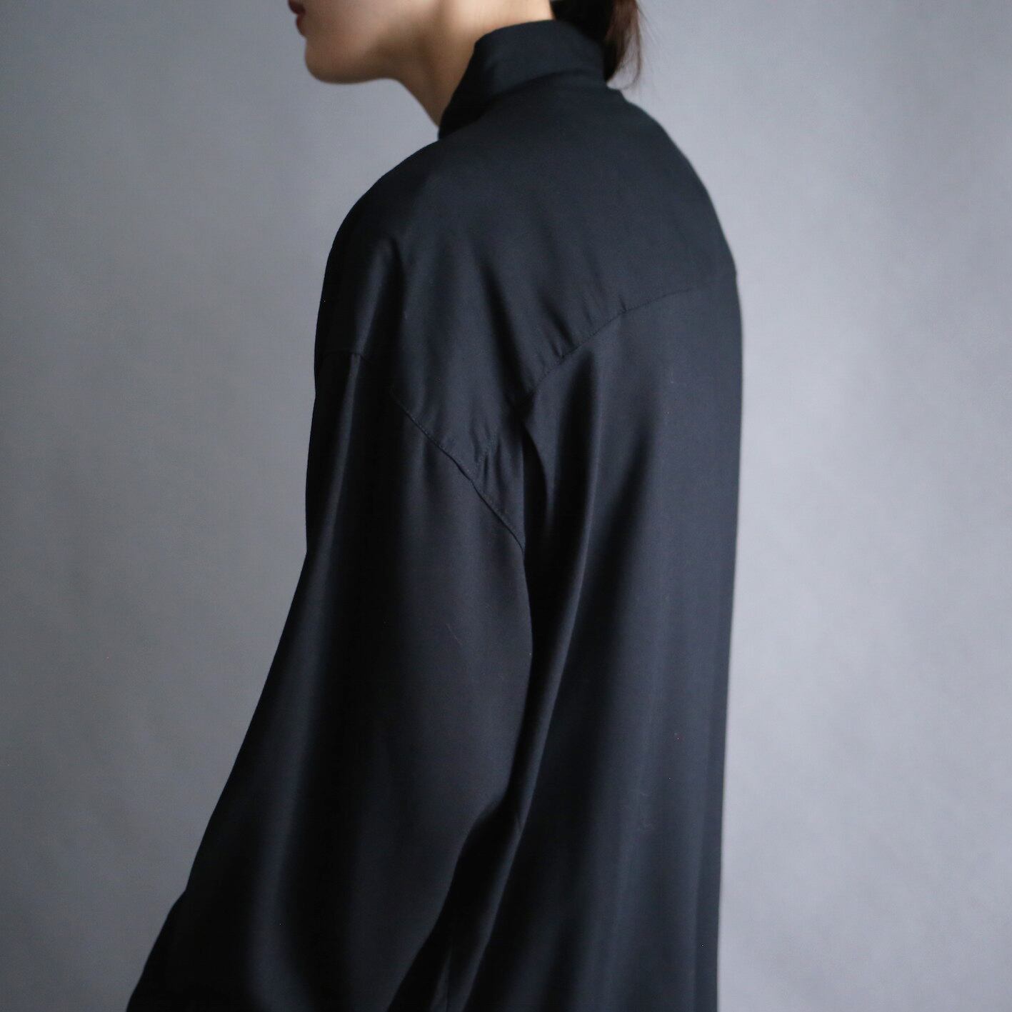 比翼仕立てに刺繍を施したオールブラックミニマルモードシャツ