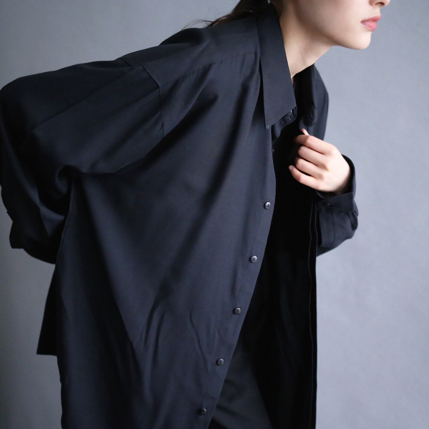 ポリレーヨンのトロッとした生地感とルーズなサイズ感がベストマッチ◎