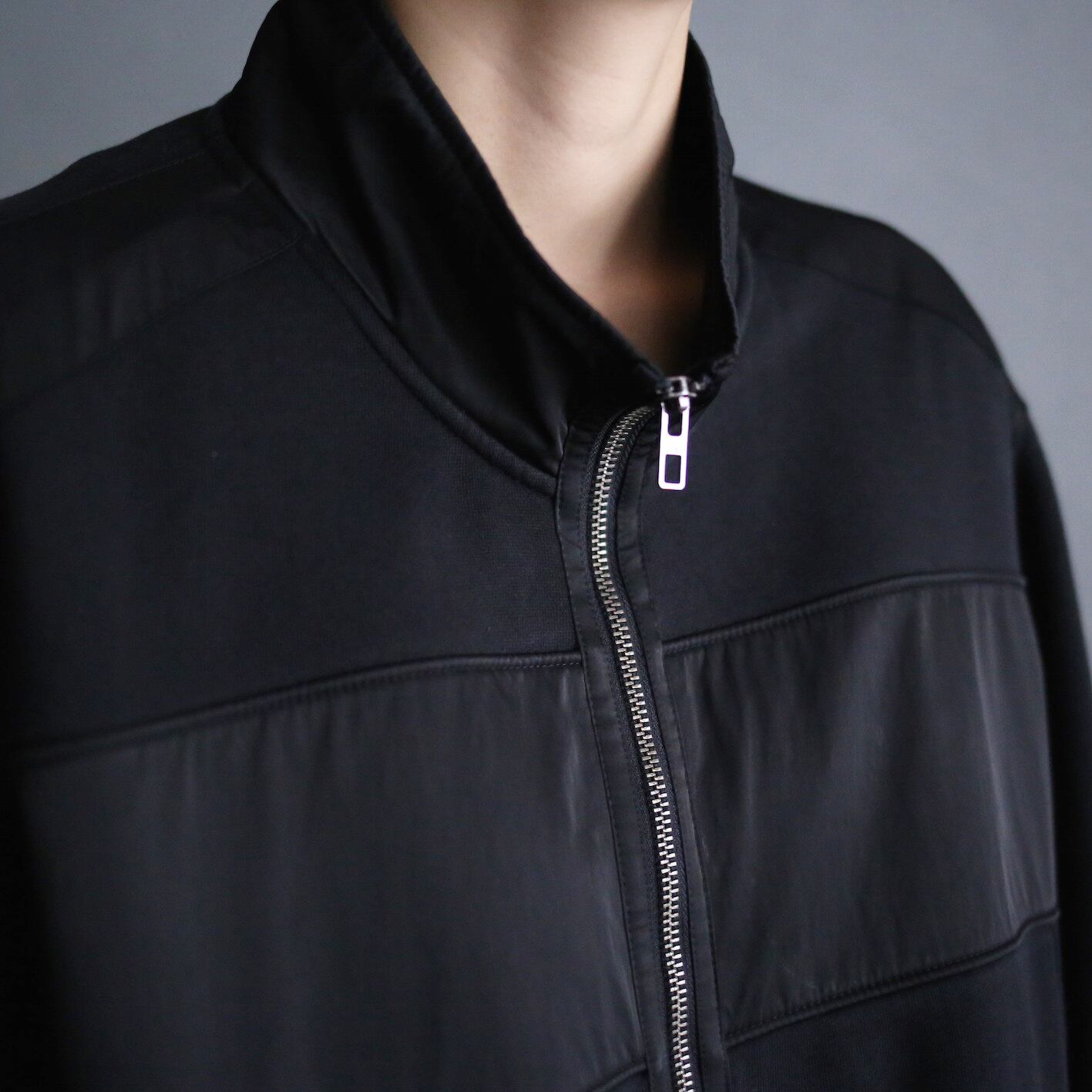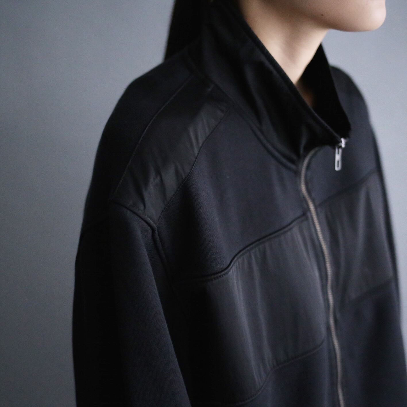 黒のワントーンに異素材の切り替えを加えた気の利いたデザイン
