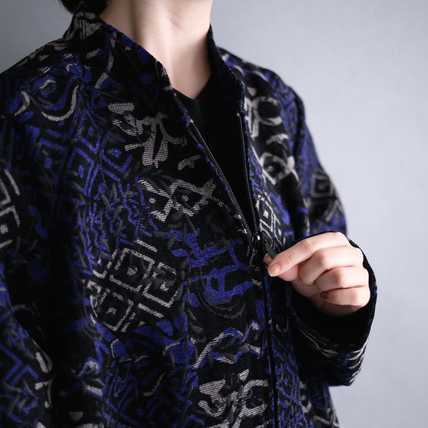 襟はミニマルなマオカラー、フロントはフルジップのスタイリッシュなデザイン◎
