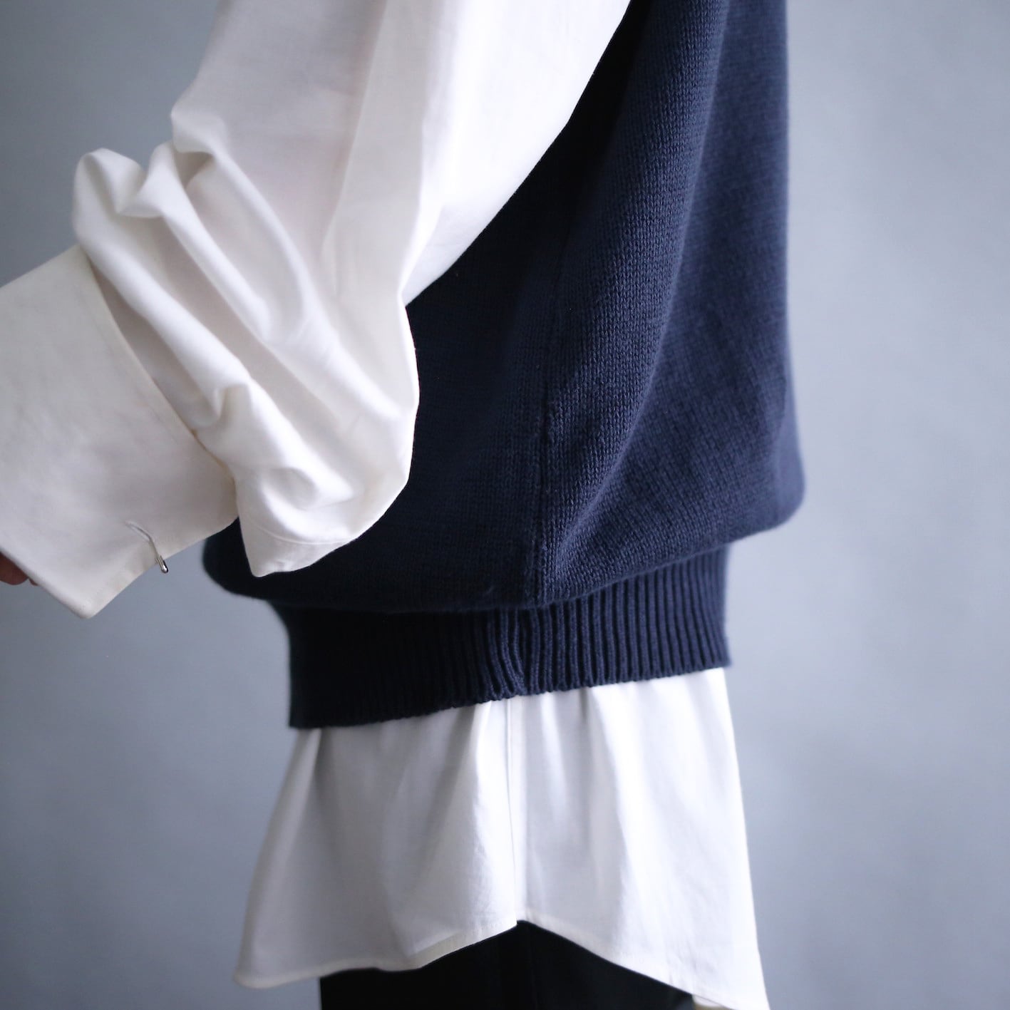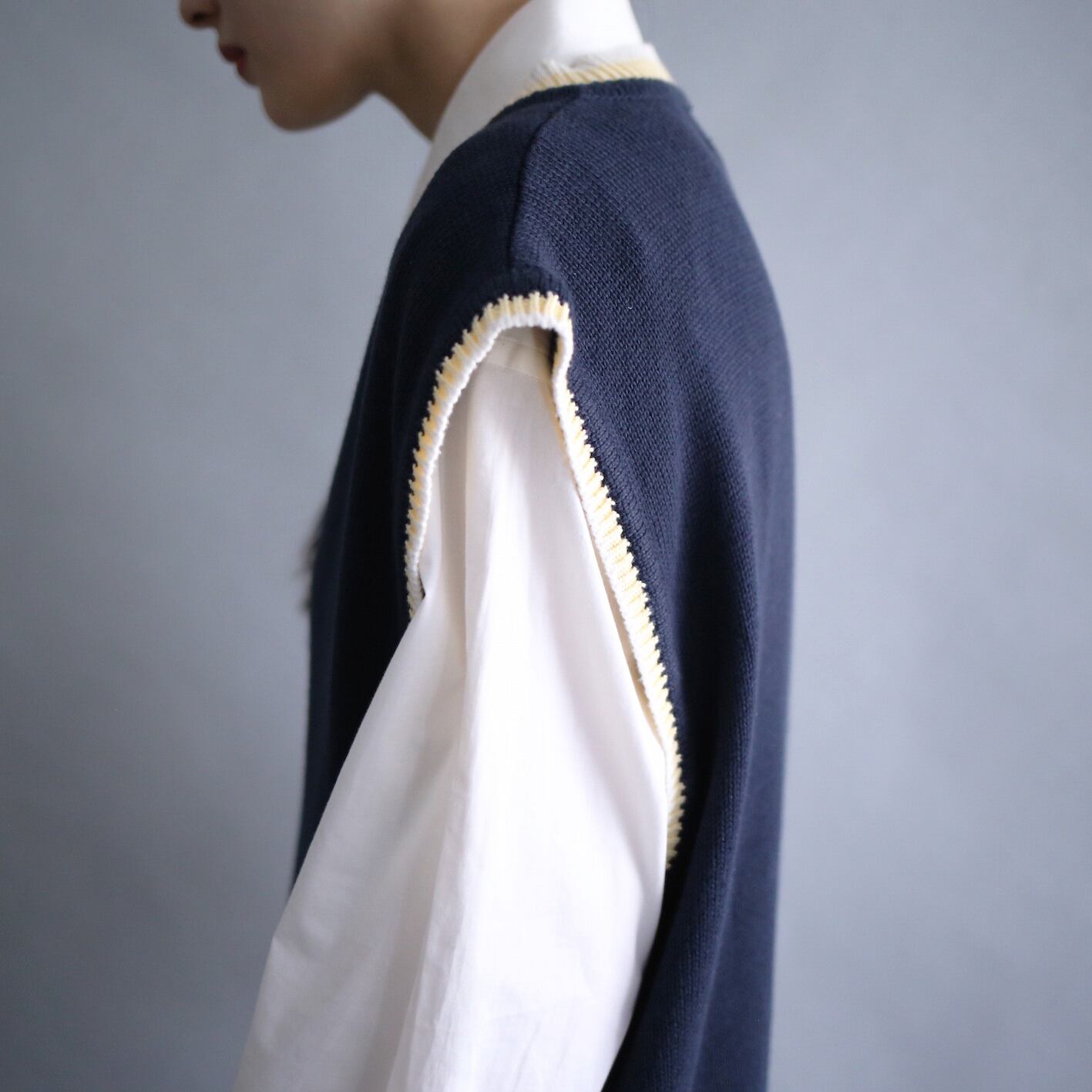 rib double line design loose knit vest