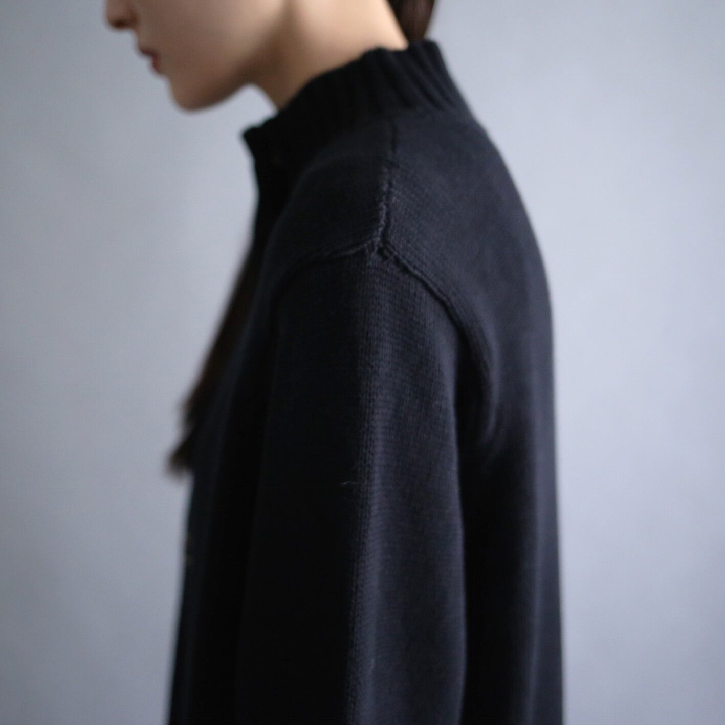 漆黒のボディに首の詰まったミドルネックでモード感ムンムン