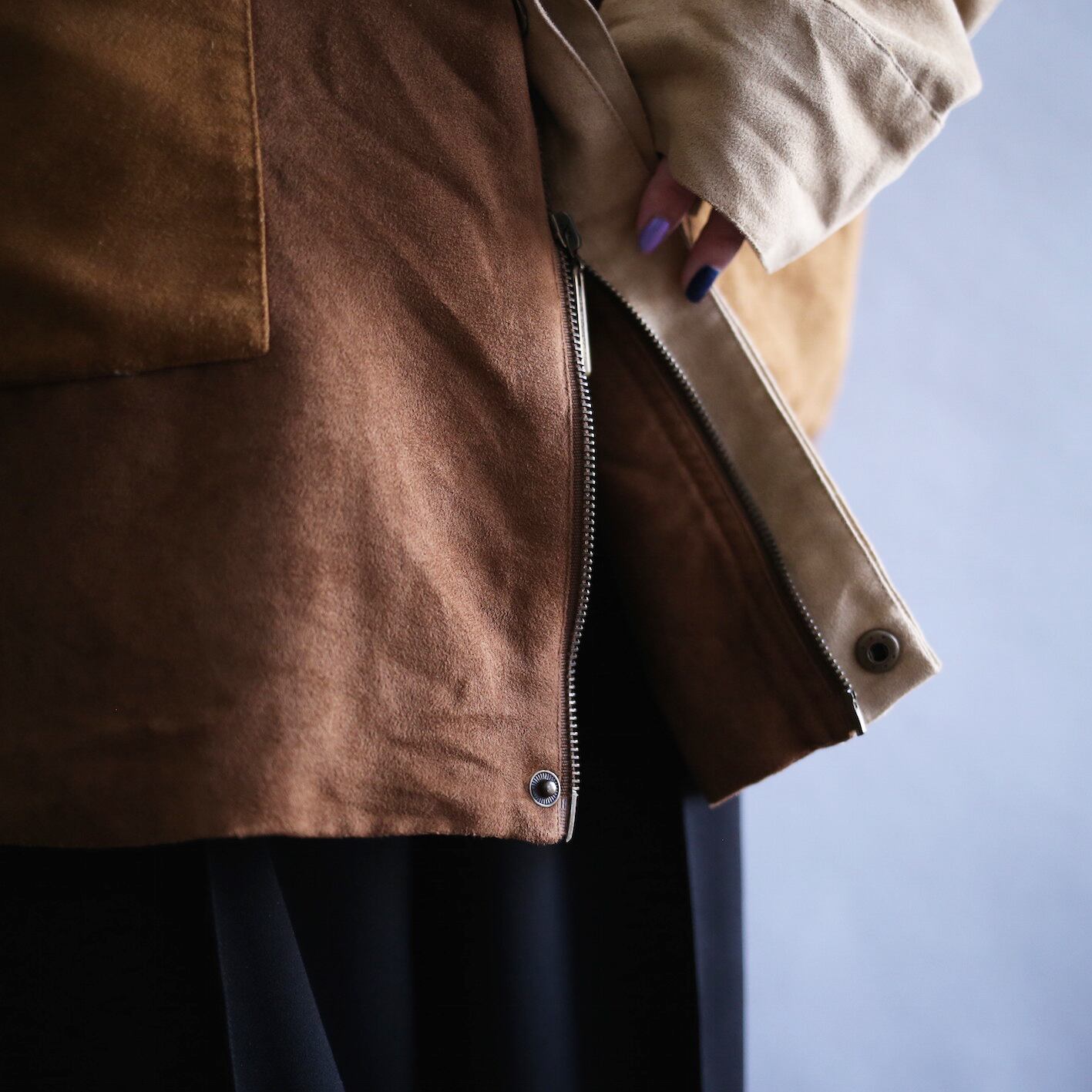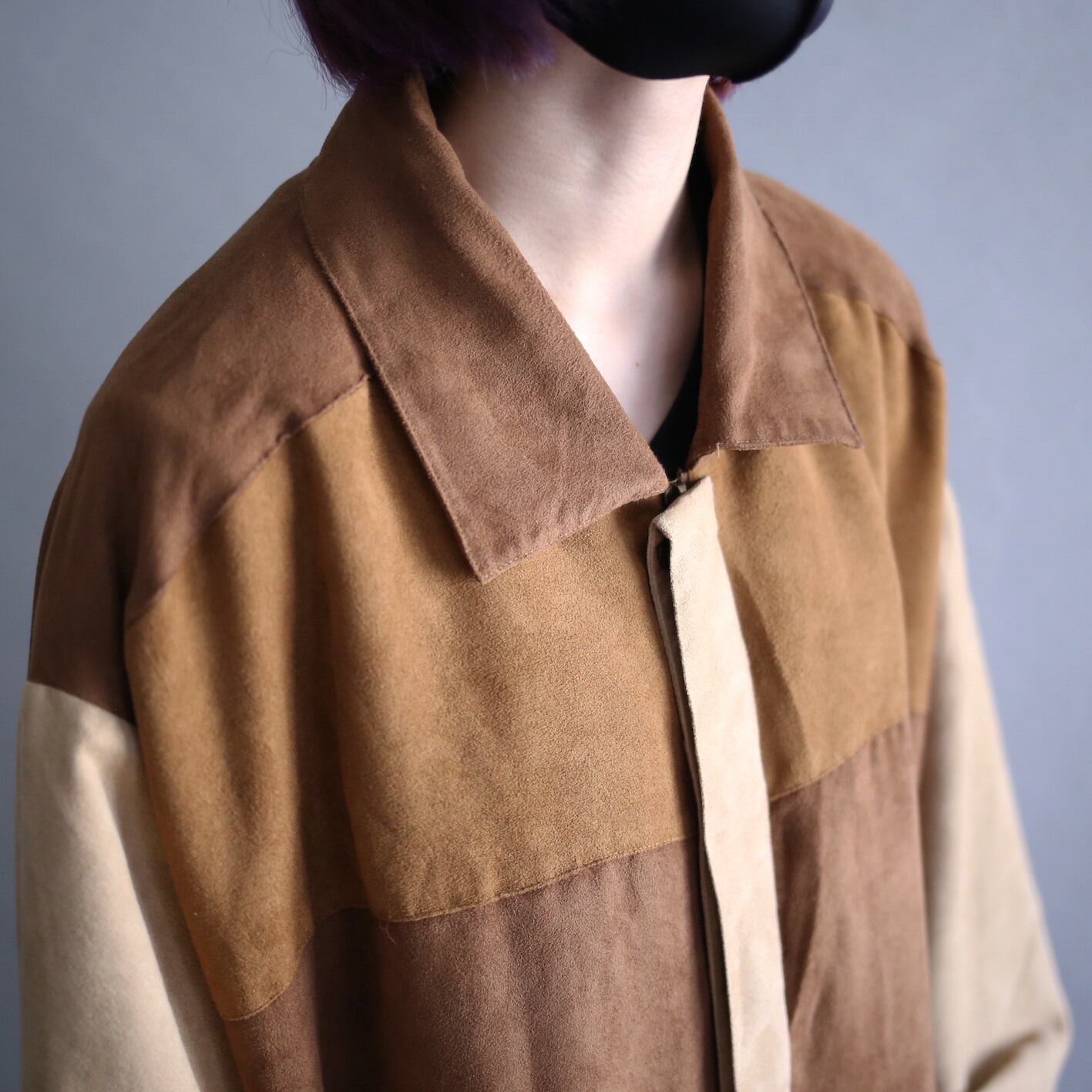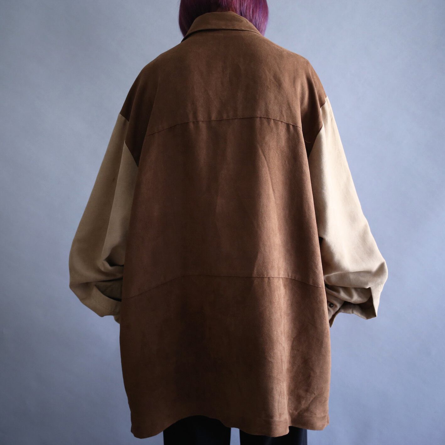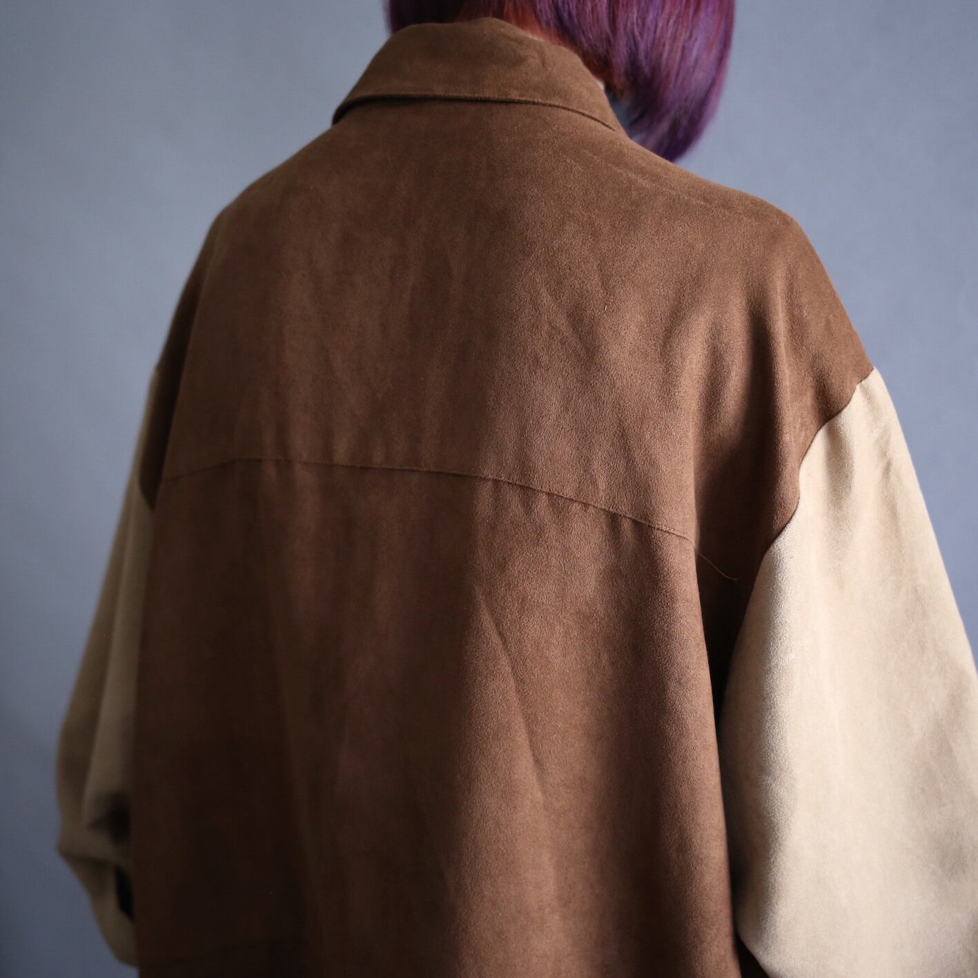 ブラウンベースの切り替えフェイクスエードジャケット
