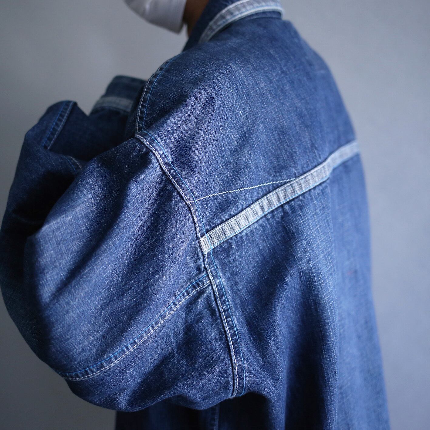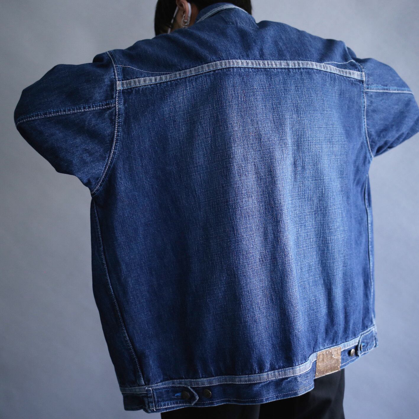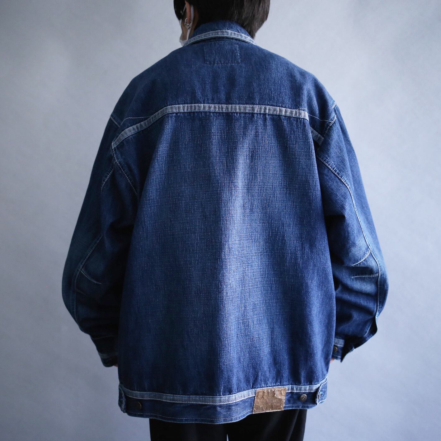 taping line design over size box silhouette denim jacket