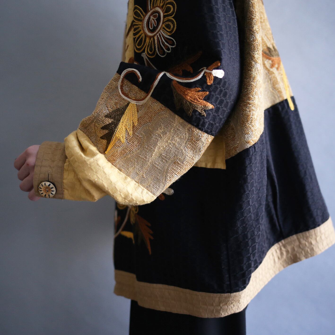刺繍の素晴らしさだけではなく、服全体を様々な生地で構築したハイセンスな"切り替え"と"配色"