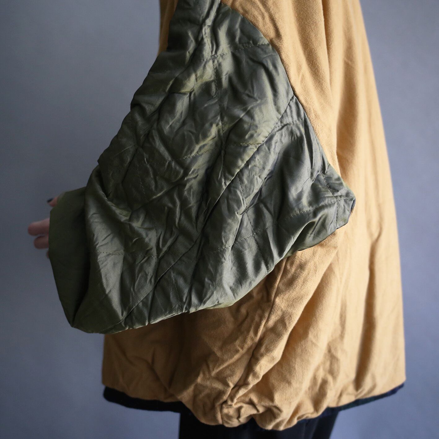 見頃部分が優しい"からし色"、そして袖がミリタリーなどでよく見るキルト生地になっており異素材感ムンムン〜◎