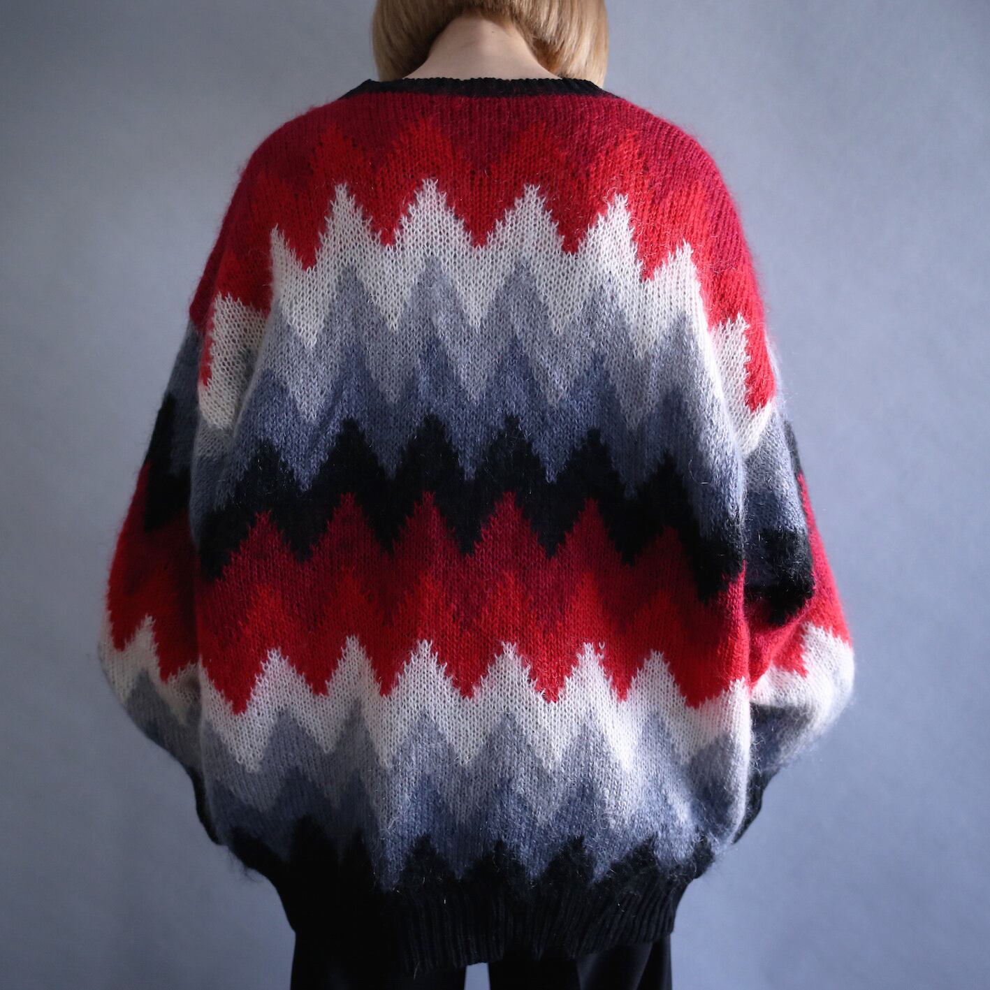 柄はギザギザとしたグラデーションカラー、しっかりとモノトーンの色も組み込まれているので見た目のインパクトとは裏腹に汎用性が高く、コーデにも落とし込みやすいかと◎