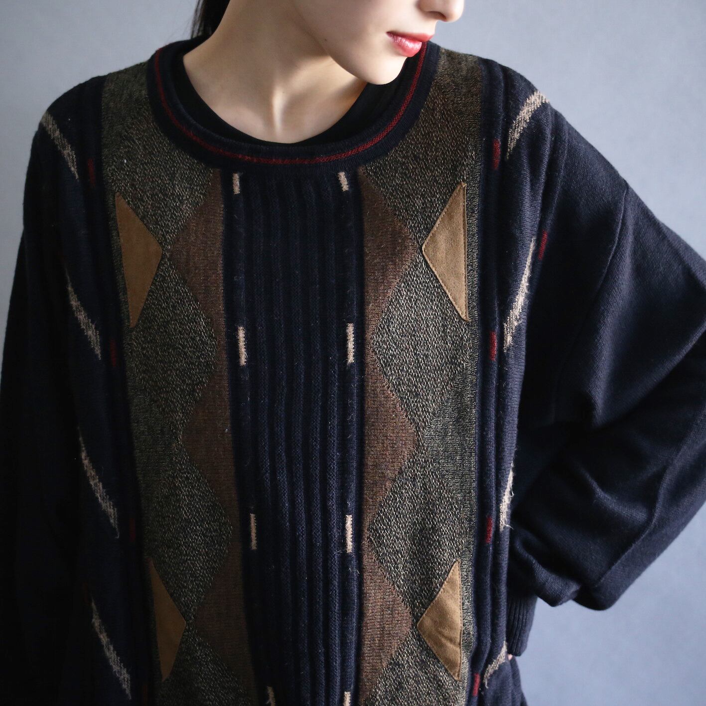 "ニット×フェイクスエード"