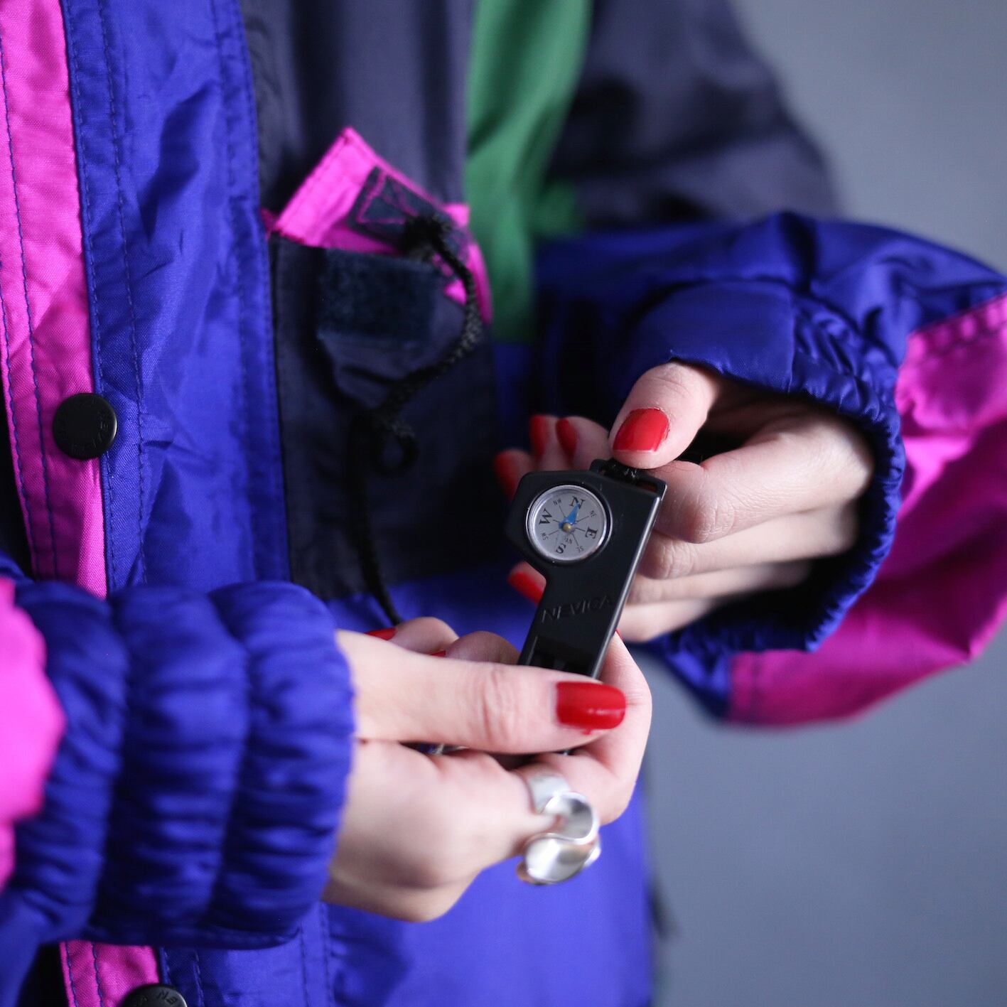 腰には今後使う予定のない"ガチャベルト"、さらに遭難でもしない限りまず使わない"コンパス"まで収納、もはや意味不明◎