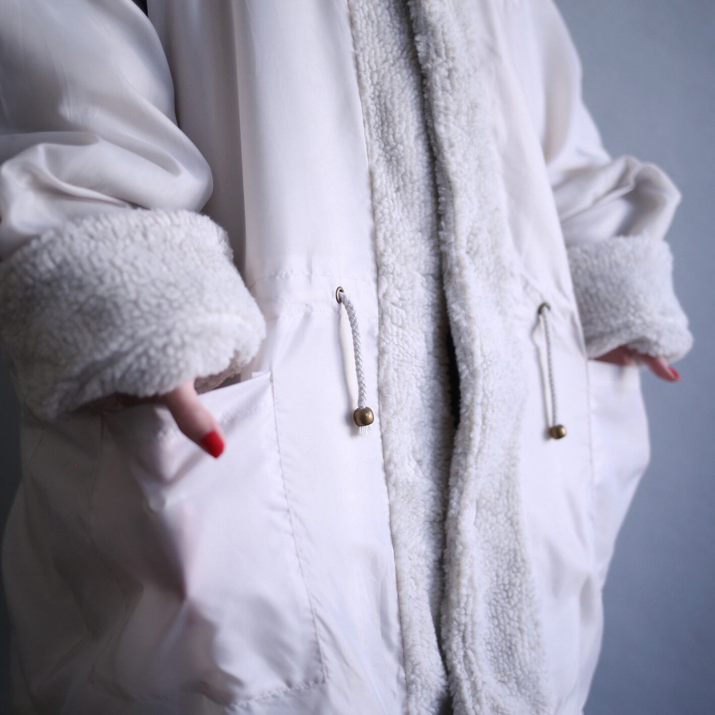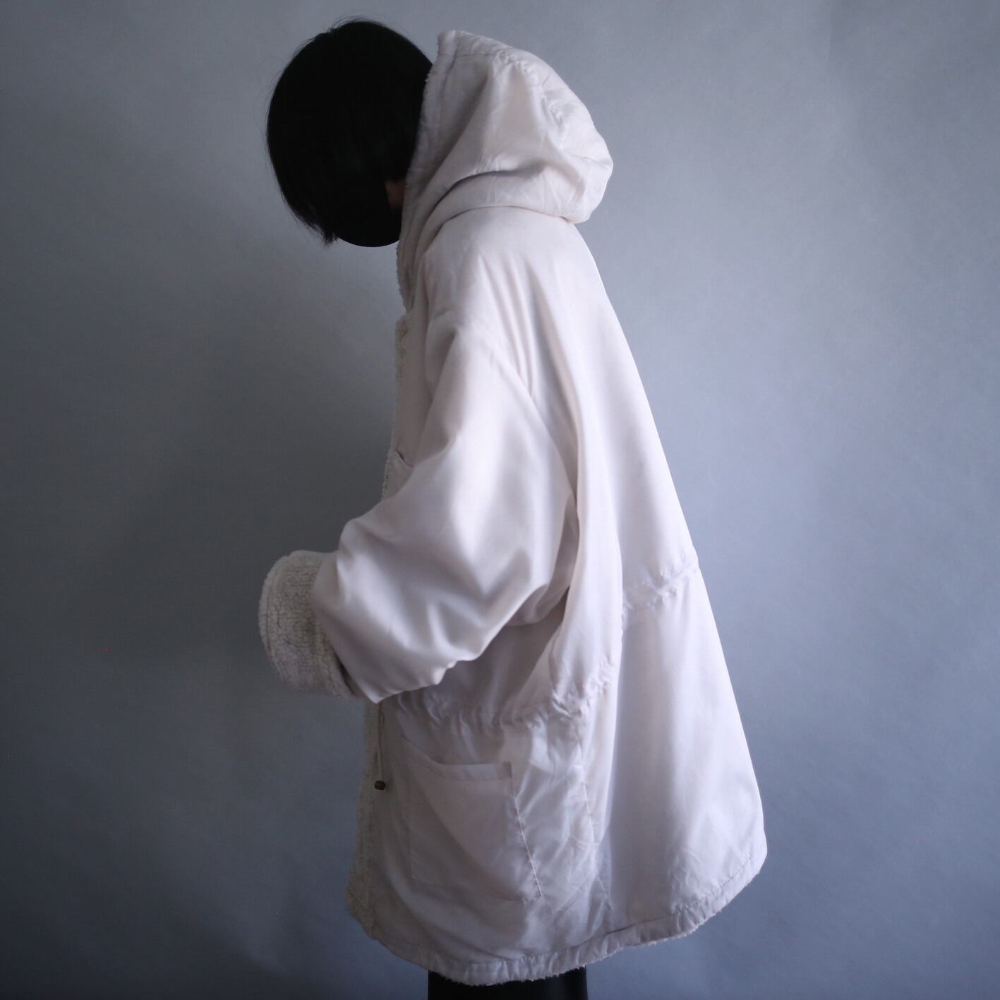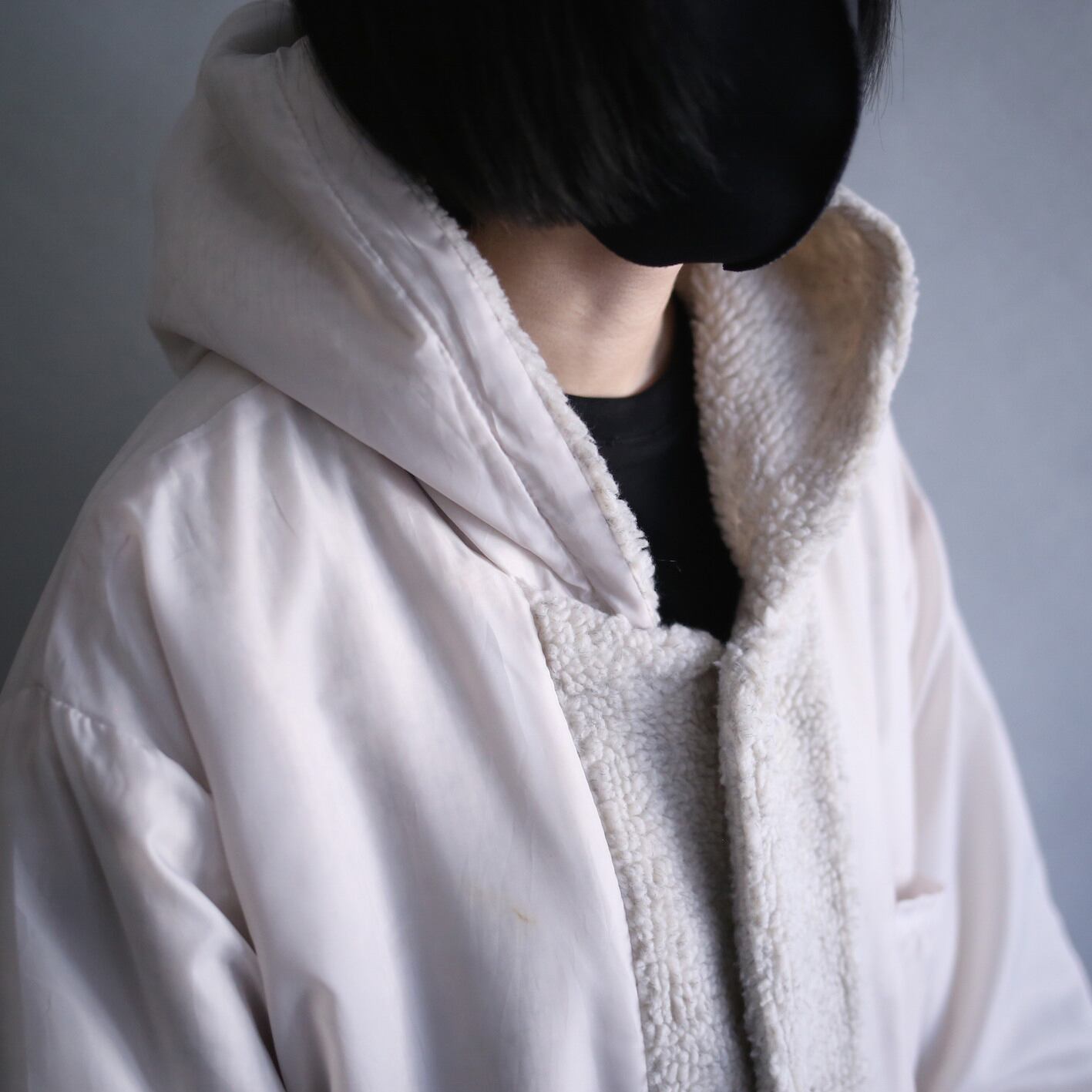 もう片面はナイロンのような質感の"シャカシャカ生地"にボアをミックスした"異素材感"たっぷりの仕上がり◎