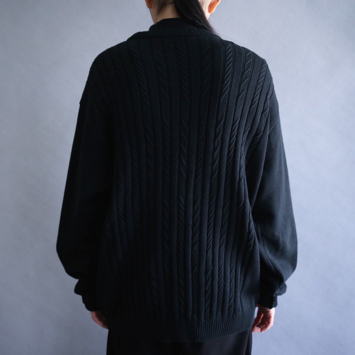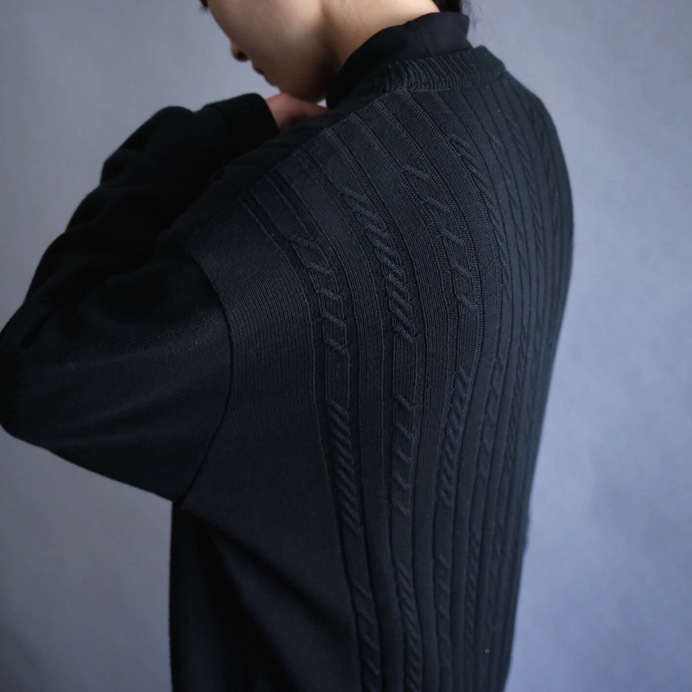 無地の部分には立体的なケーブル編みが施され、作り手の拘りの高さも感じ取れます