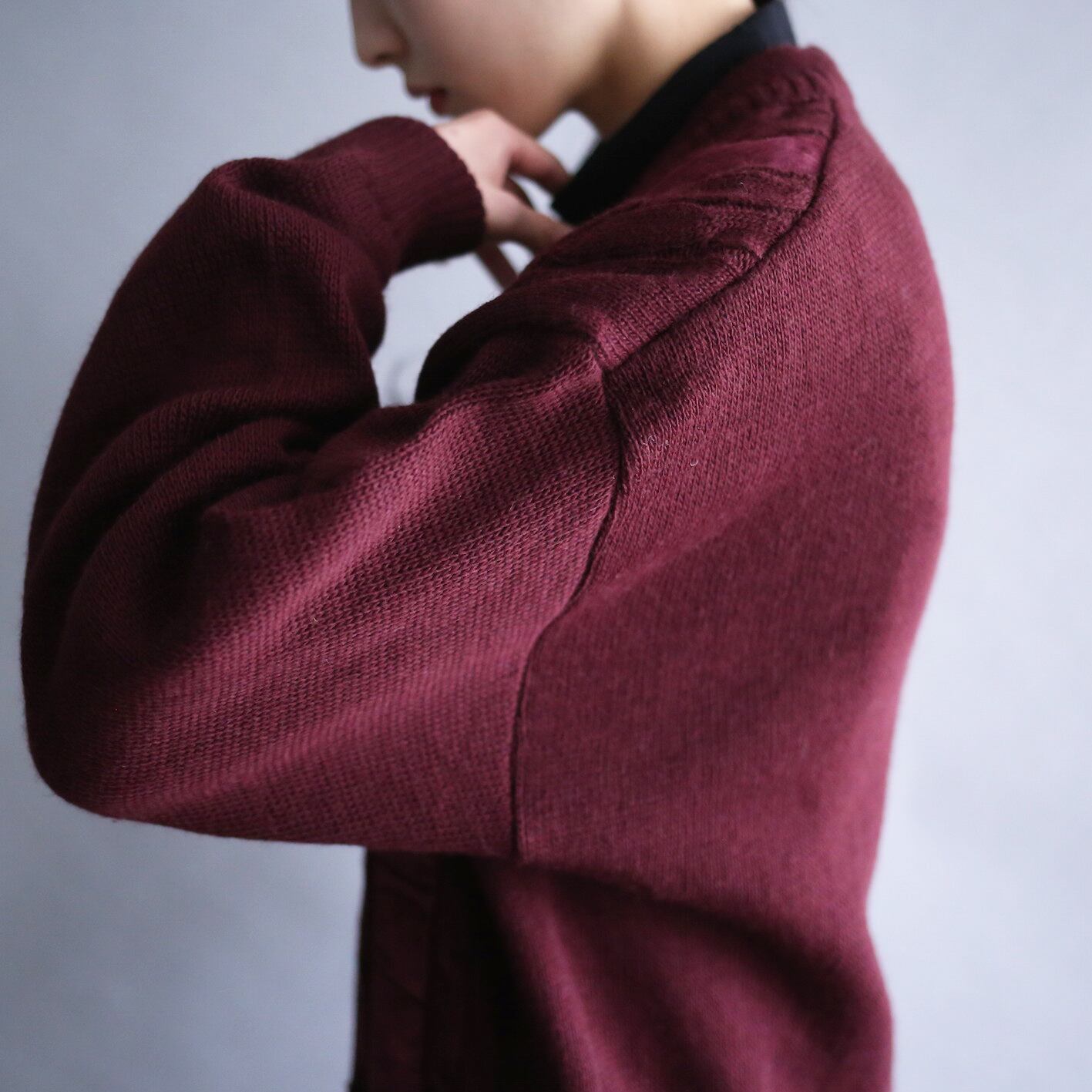 深〜いボルドーのグッドカラーカーディガン