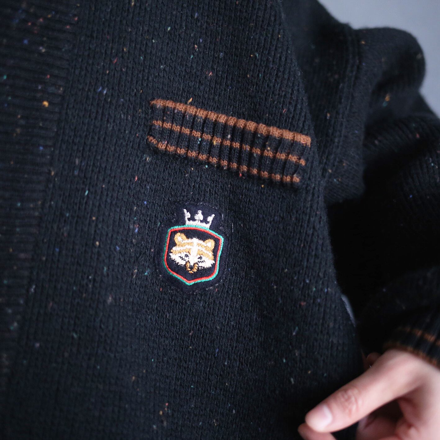 前リブには茶色のラインが施されており気の利いたアクセントをプラス、さらに左胸には動物を模したワンポイントワッペンが載せらて古着らしいユニークさも◎