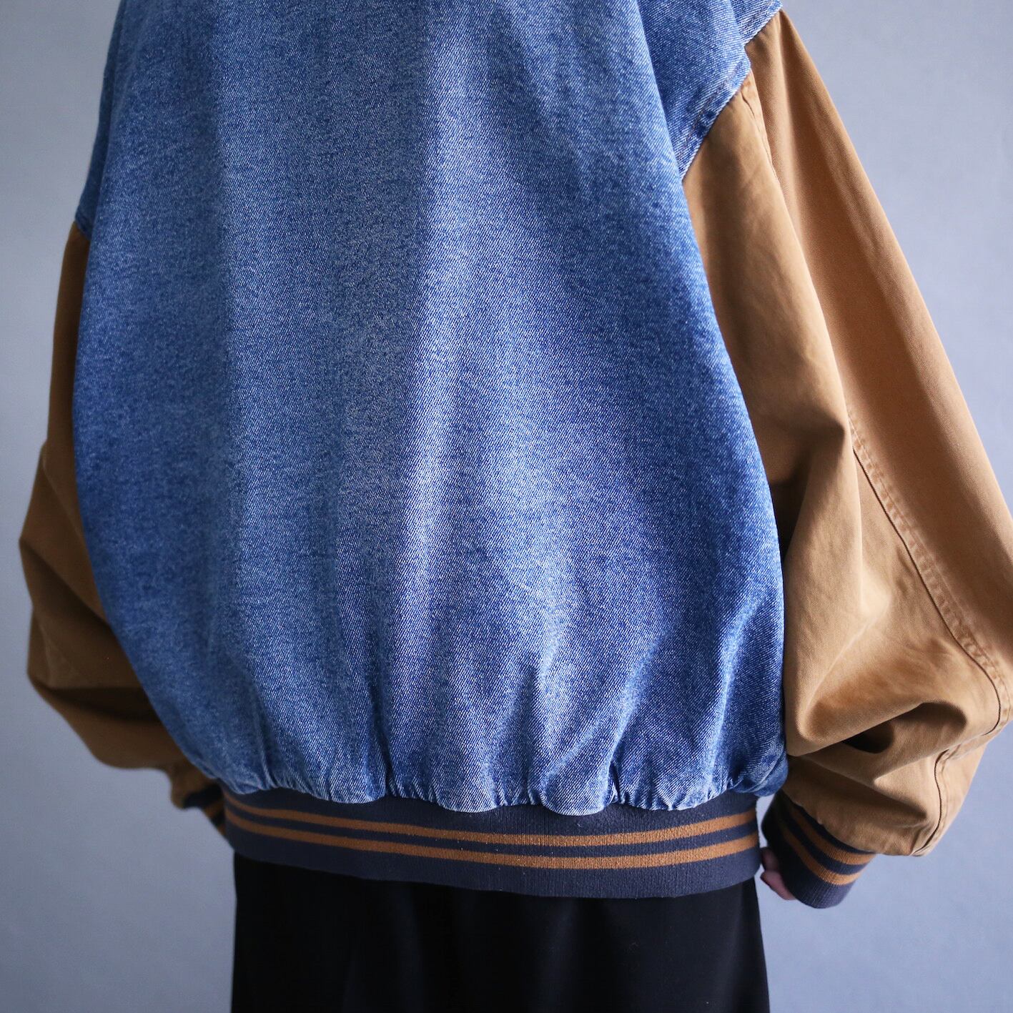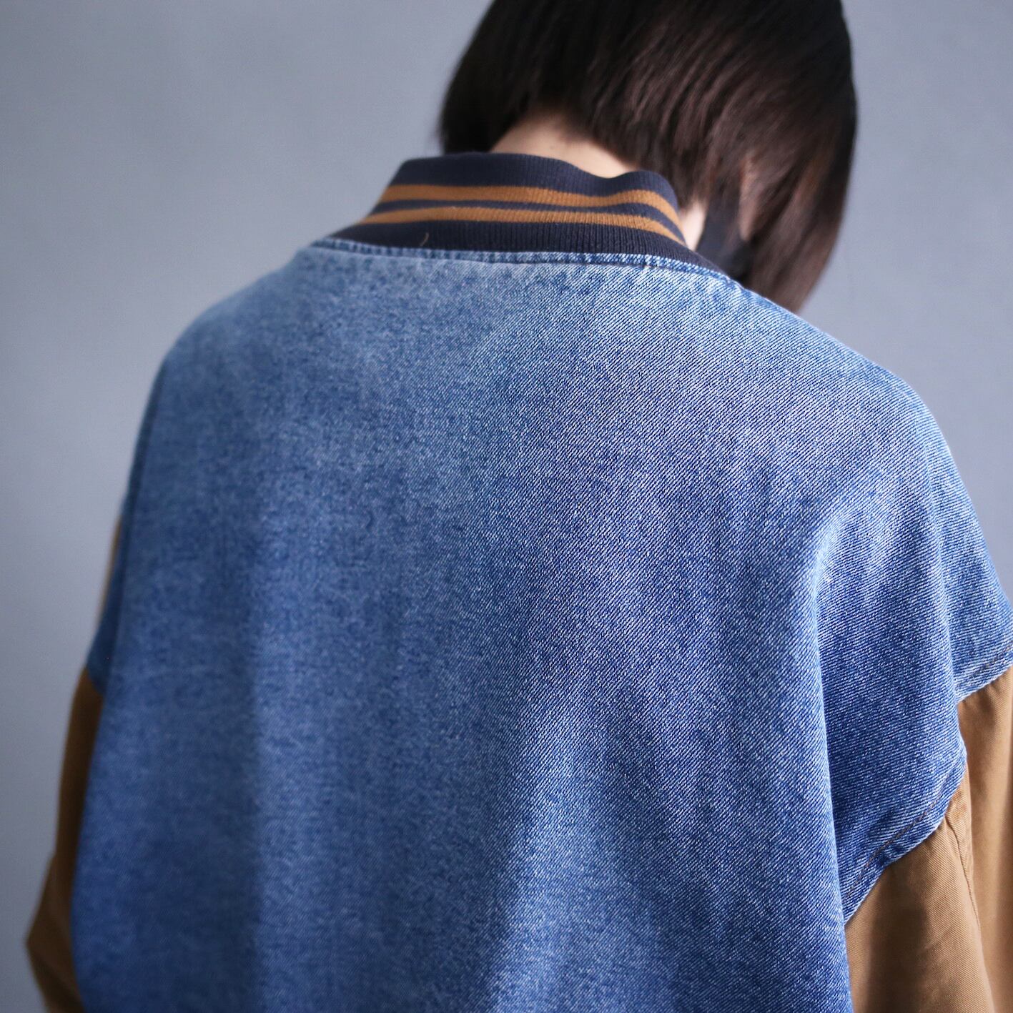 身頃が程よくウォシユの効いたデニム、袖が柔らかい雰囲気を醸し出しながら"コク"もしっかりと感じる茶色