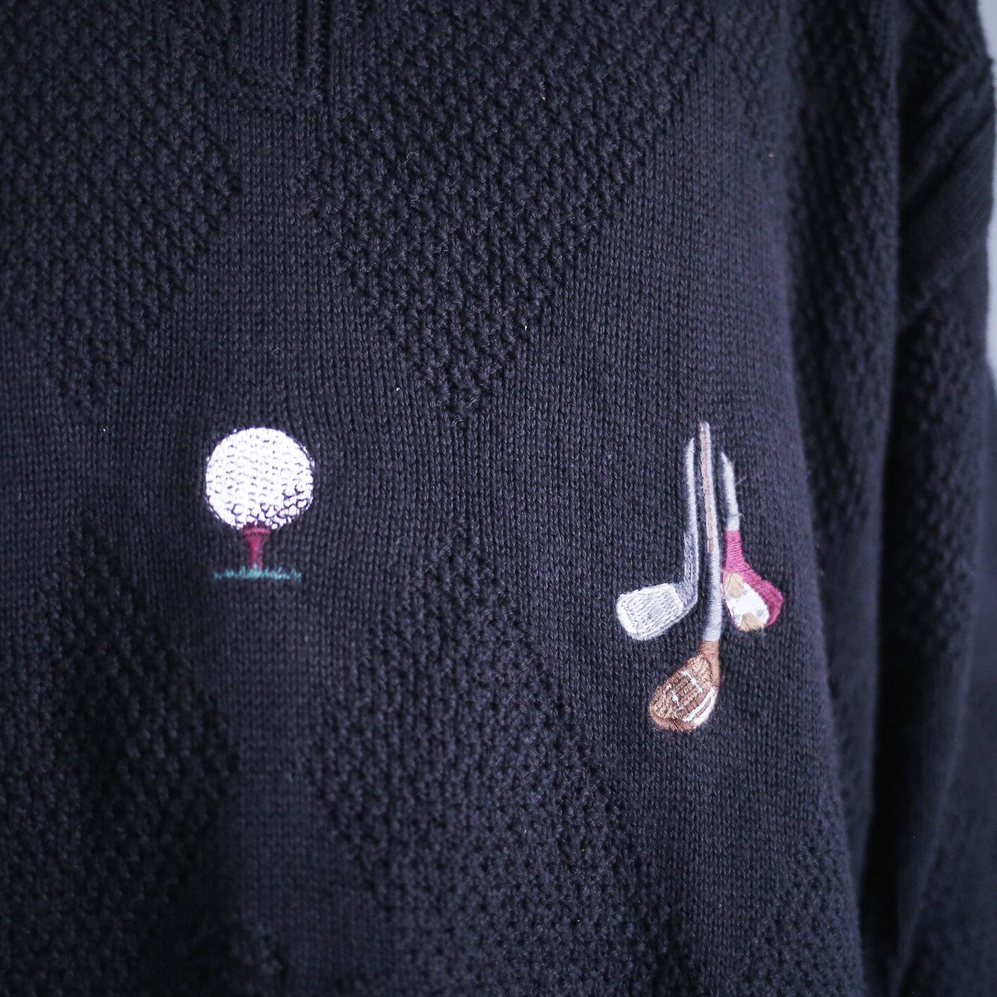 中央にはゴルフ刺繍、リブにはブルーとホワイトのラインが黒字のシックな雰囲気に映えてコレ一枚での完成度も最高です