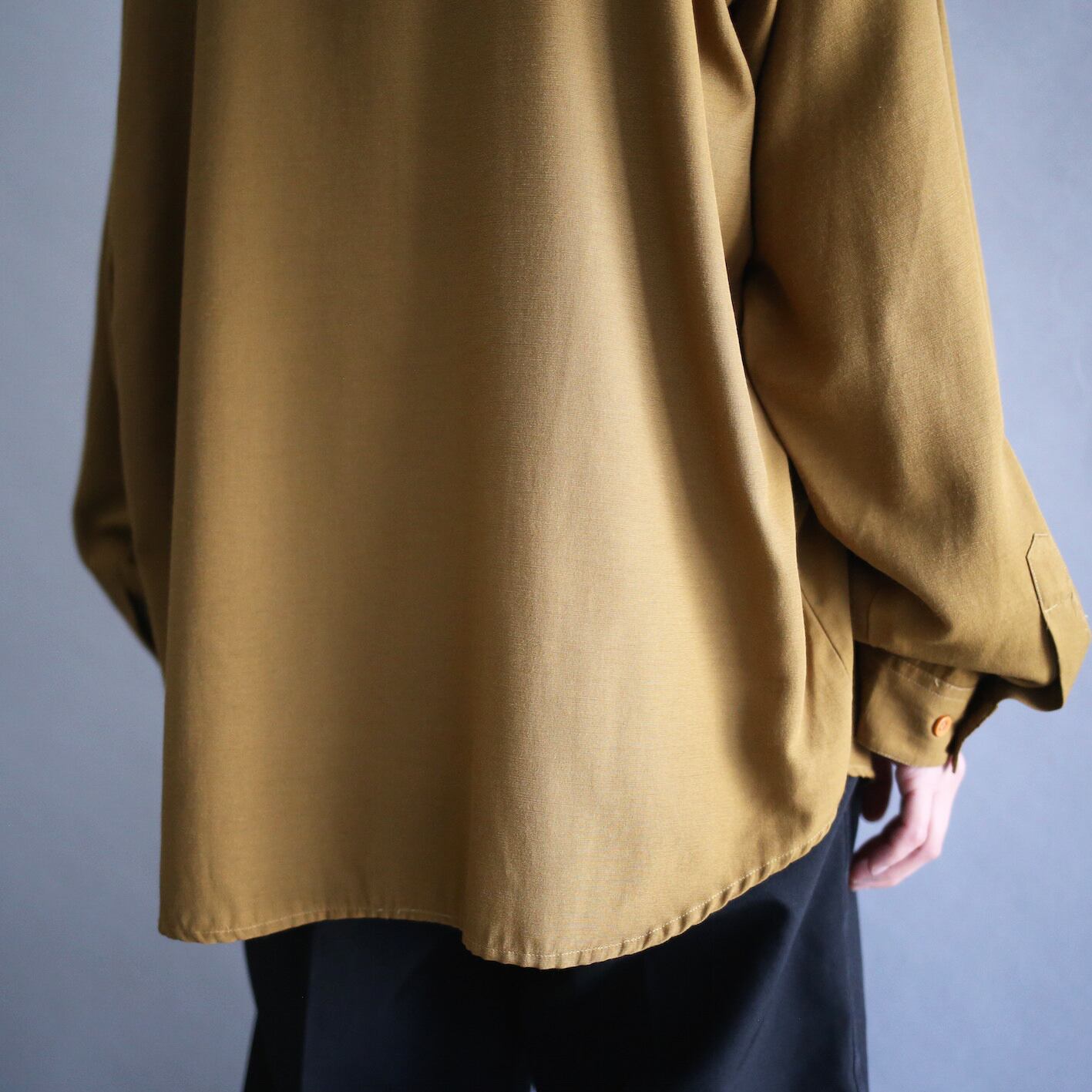 襟元は洗練された印象を与えるスッキリとしたバンドカラー、普通のシャツとは一味違った大人カジュアルな雰囲気に