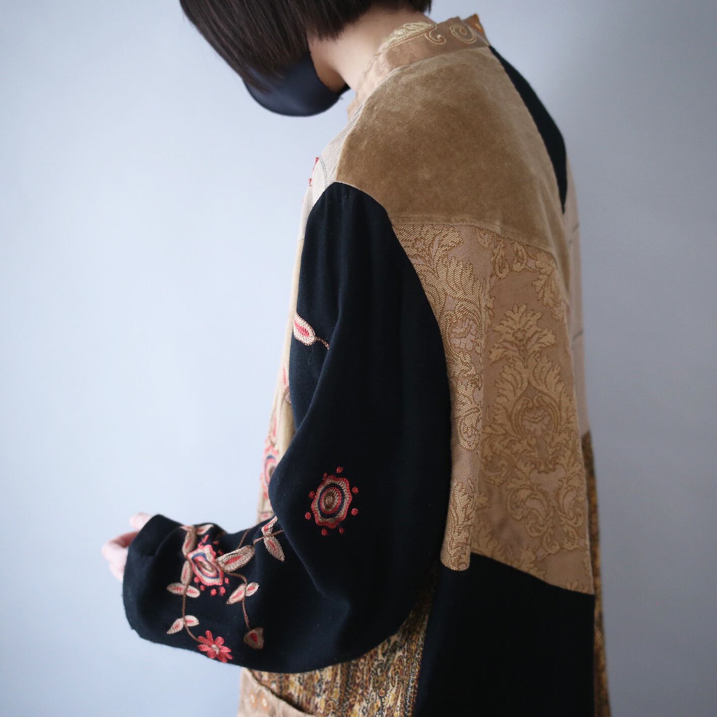 光沢感のあるサテン生地や織りがしっかりと入ったザックリ生地、ベロアのようなフワッと起毛した肌触り最高の生地など、多岐に渡って組み合わせられた"唯一無二"の仕上がり
