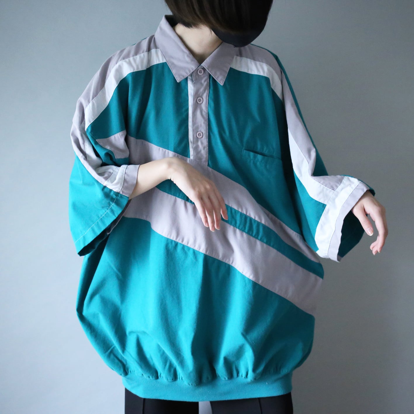 着丈79に対して身幅76の綺麗なボックスシルエット、横に大〜きく広がるオーバーサイズに裾がギュッとツボまるこの独特のシルエットが本当に可愛いすぎます