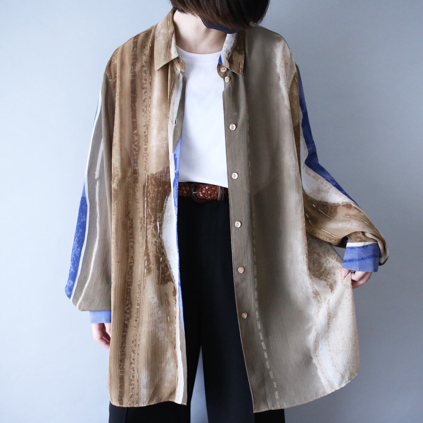 店頭、オンラインともに人気のシースルーシャツ、今回ご用意したのはその中でも特に珍しい総柄アートな一枚