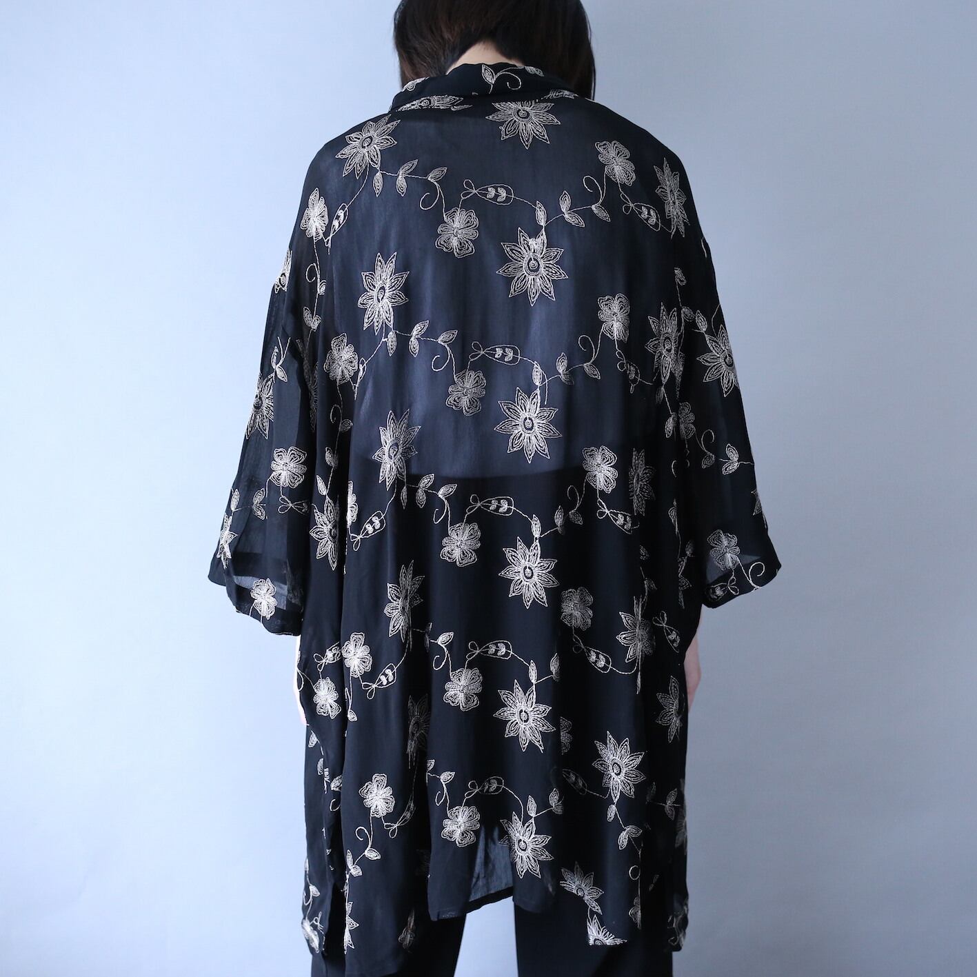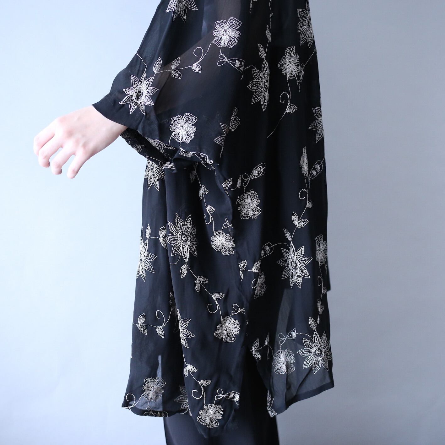 蔦から伸びる花や葉の"刺繍"を全身に巡らせたオーバーシルエットシースルーシャツ