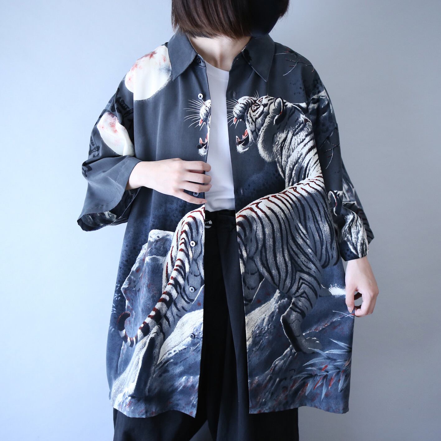 どこかダーク感漂う月夜にダイナミックな白虎のプリントを施した極上デザインシャツ