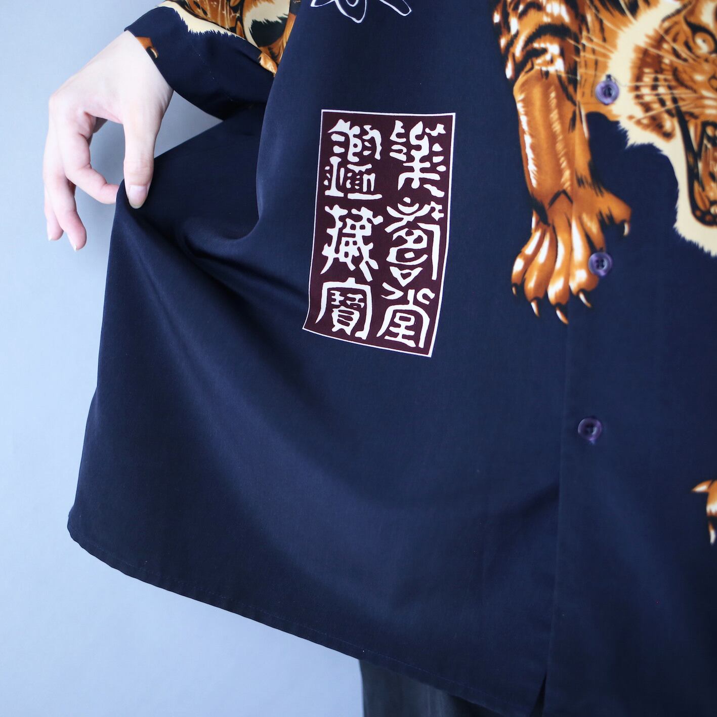"虎×漢字"の最強感たっぷりのグラフィックを纏ったオーバーシルエットシャツ