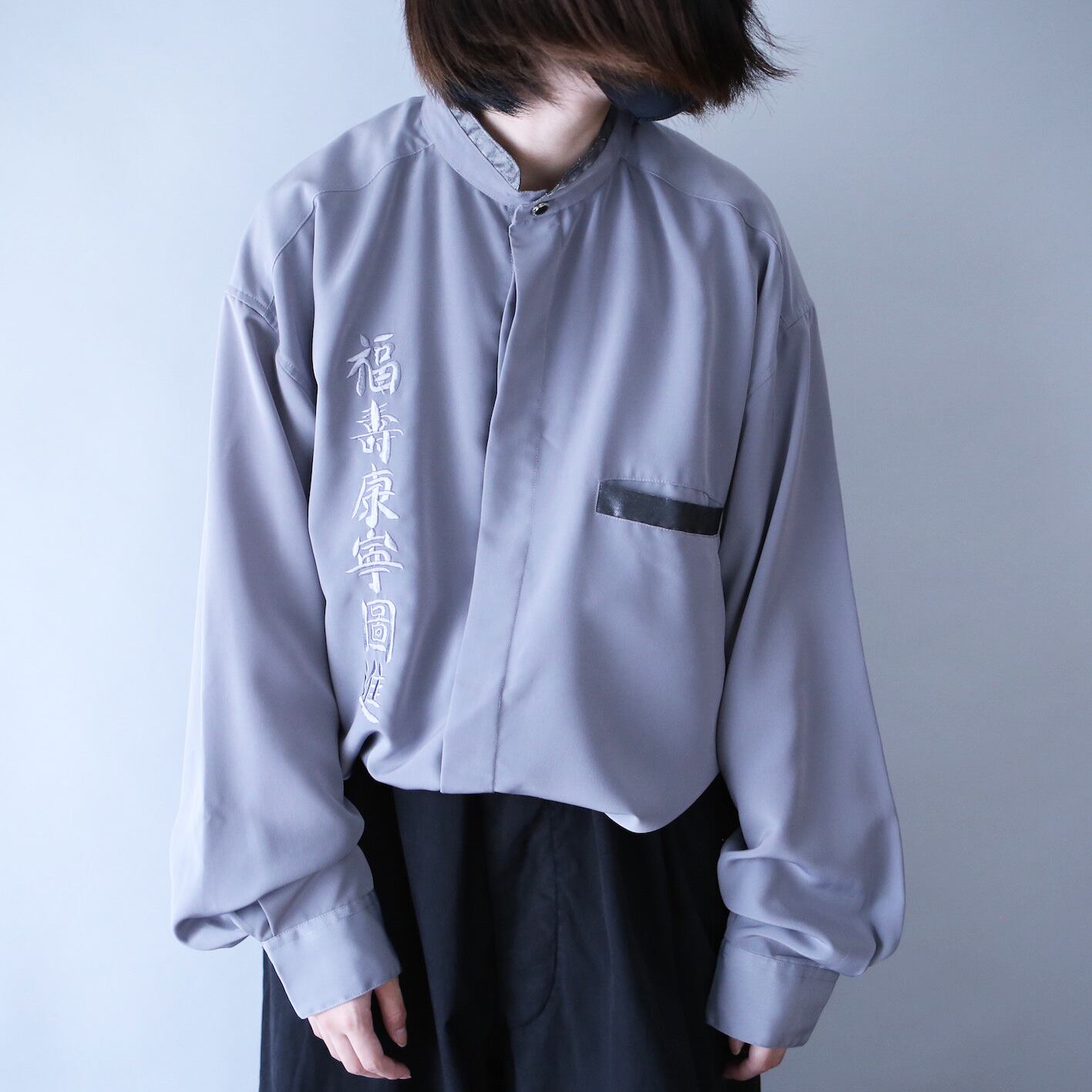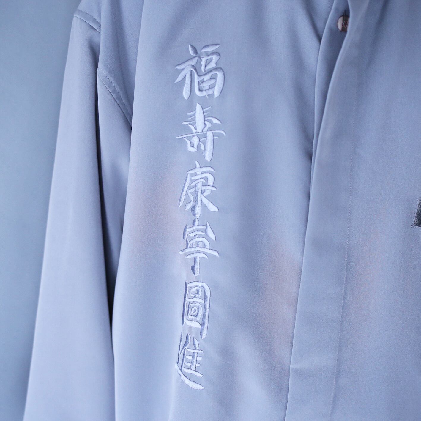 洗練された印象を与えるライトグレーに同系色の切り替えと漢字の刺繍