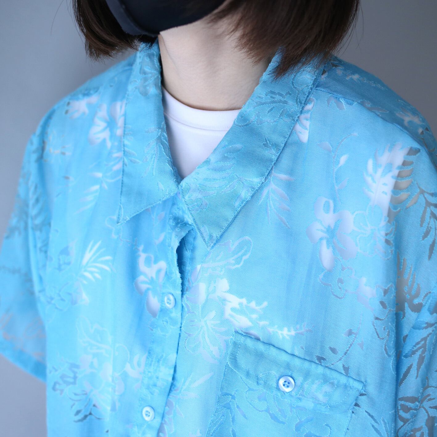 ボタニカル調の草花が柄として施されており、その部分がシアー生地に変貌