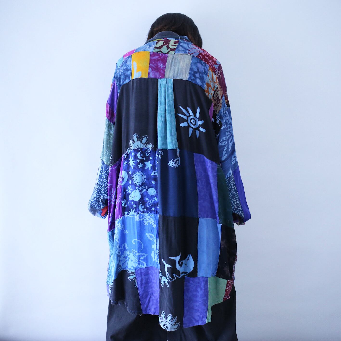 色、柄が異なる生地をふんだんに使い一枚の服に昇華させたサイケデリックな雰囲気漂う一点物シャツ