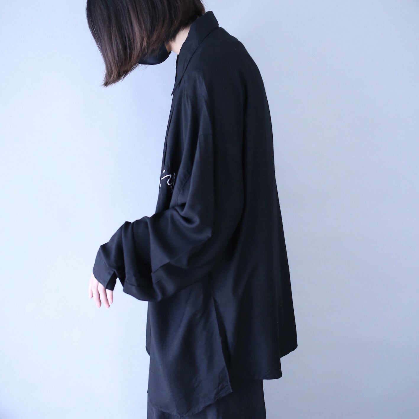 左胸には人をモチーフとしたアーティスティックな刺繍が繊細に美しく、黒地に対して白い糸で縫い込みがされているのでモードでシックな印象を与え、さらに高級感をムンムンに◎