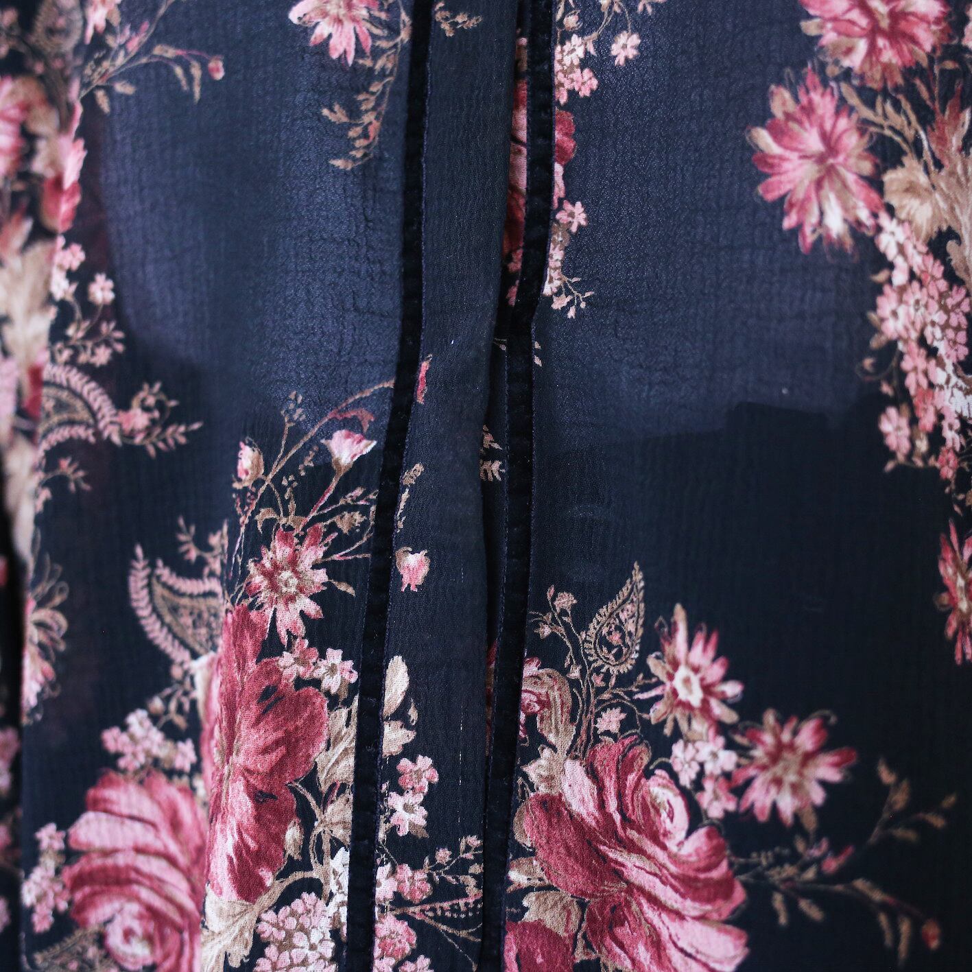 黒地に可憐で美しい大判な花柄を載せた極上シースルーシャツ