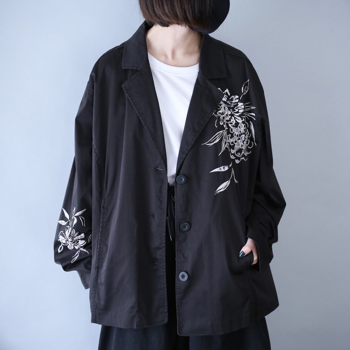 黒地に対してシルバーの刺繍糸が良く映え、古着とは思えないほどの高級感とモードさを放ってくれます