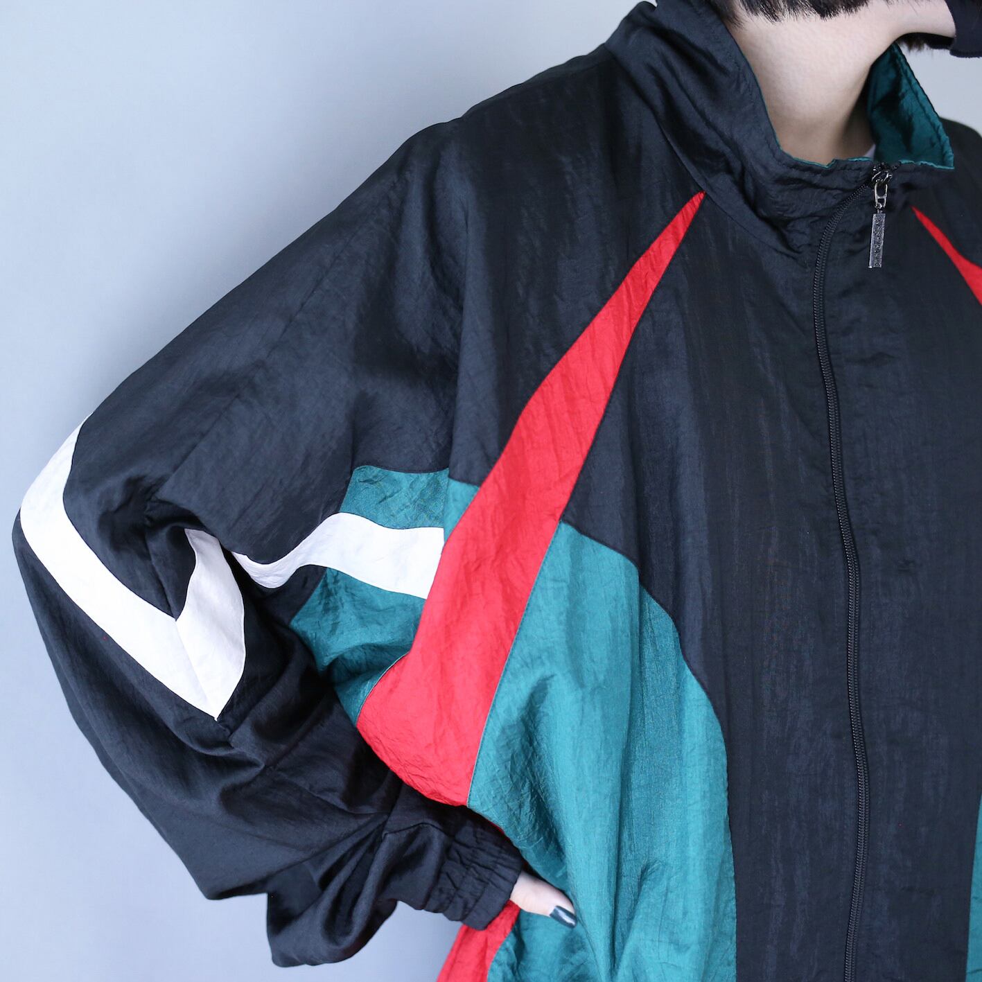 "黒×赤×緑×白"の4色からなる絶妙〜な配色バランスと身幅、アームがたっぷりとワイドに作られたメンズ2XL相当のナイロンジャケットでは理想とされるルーズなサイズ感
