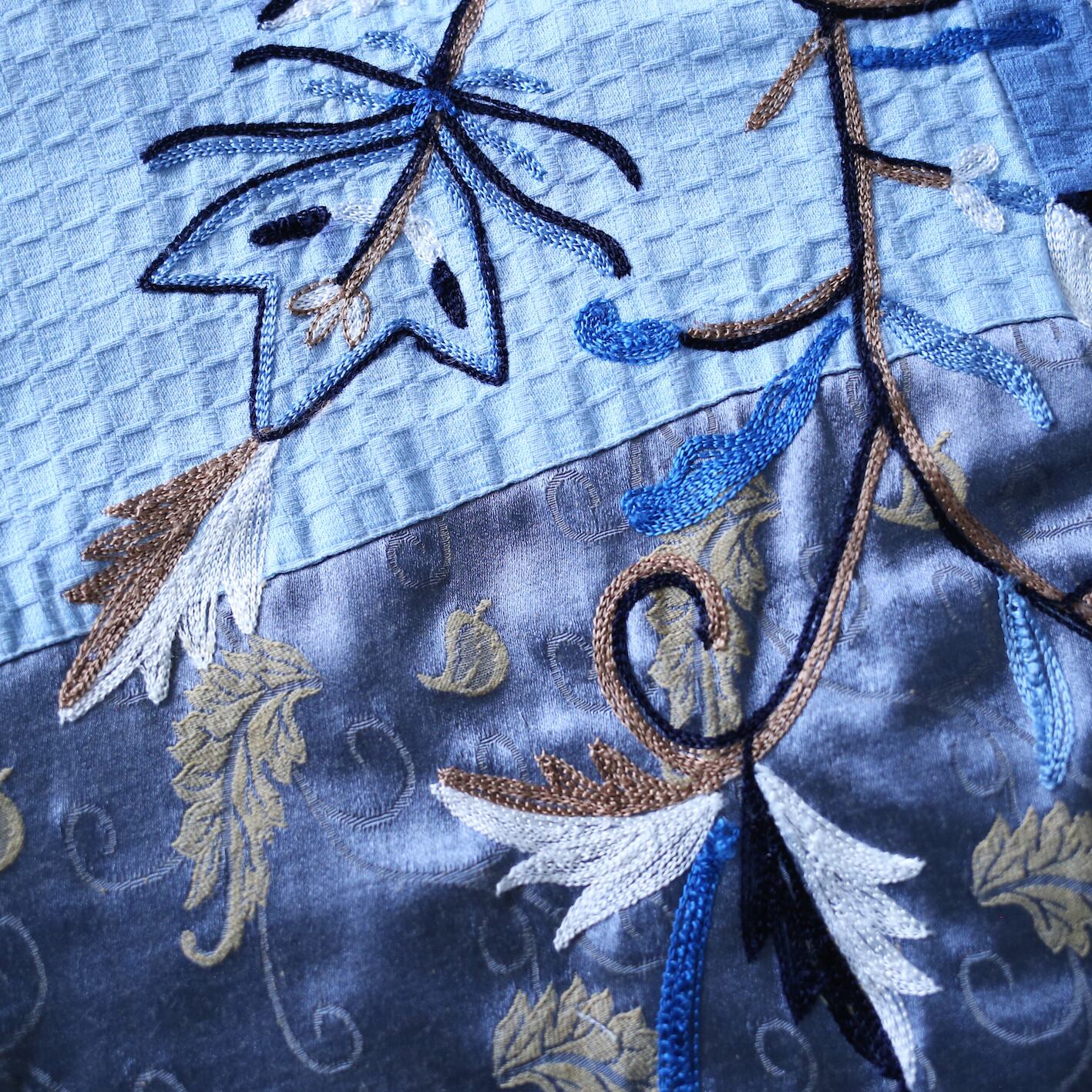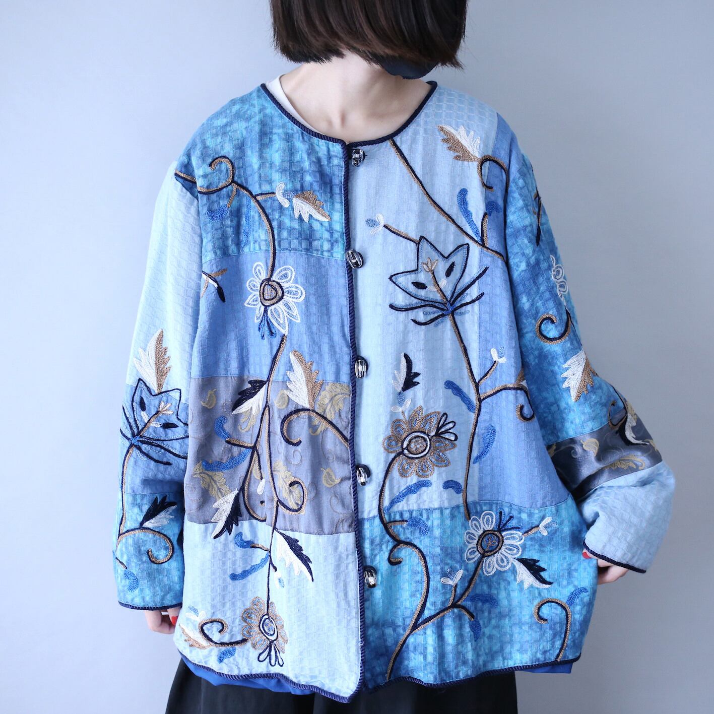 幻想的で美しい寒色を巧みに使い分け"花刺繍"を服全体にトッピングしたスペシャルゴブランジャケット