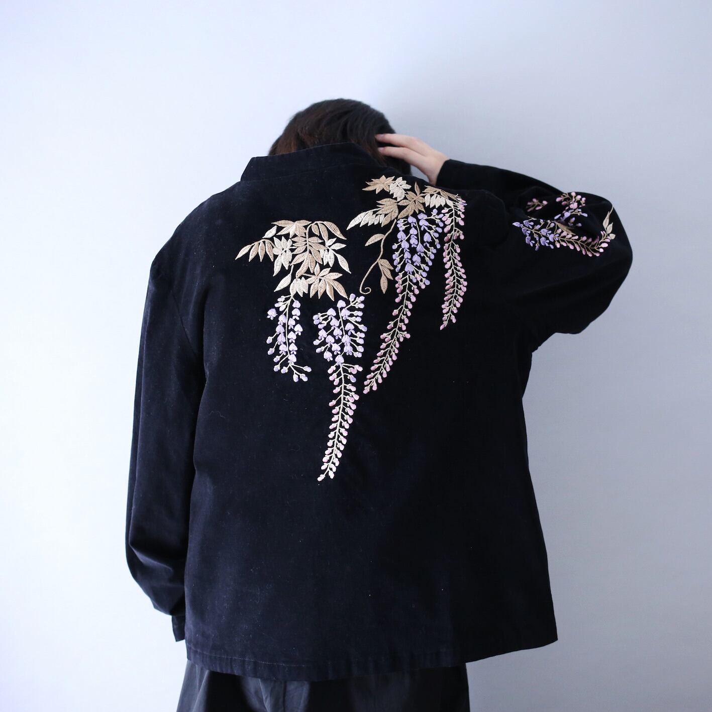 前、後、両袖すべて優雅で美しい花の刺繍を施したスペシャルベロアジャケット
