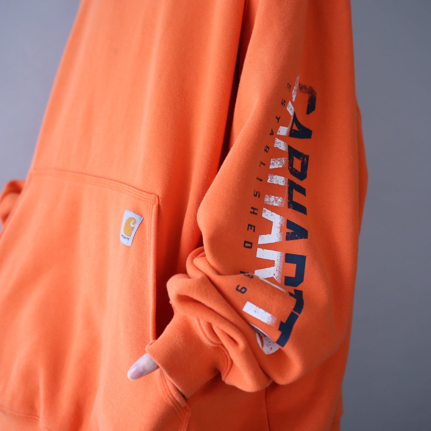 カーハートの中でも袖にプリントが施されたモノは特に稀少価値が高く、さらにこのオーバーサイズを探すのは至難の業