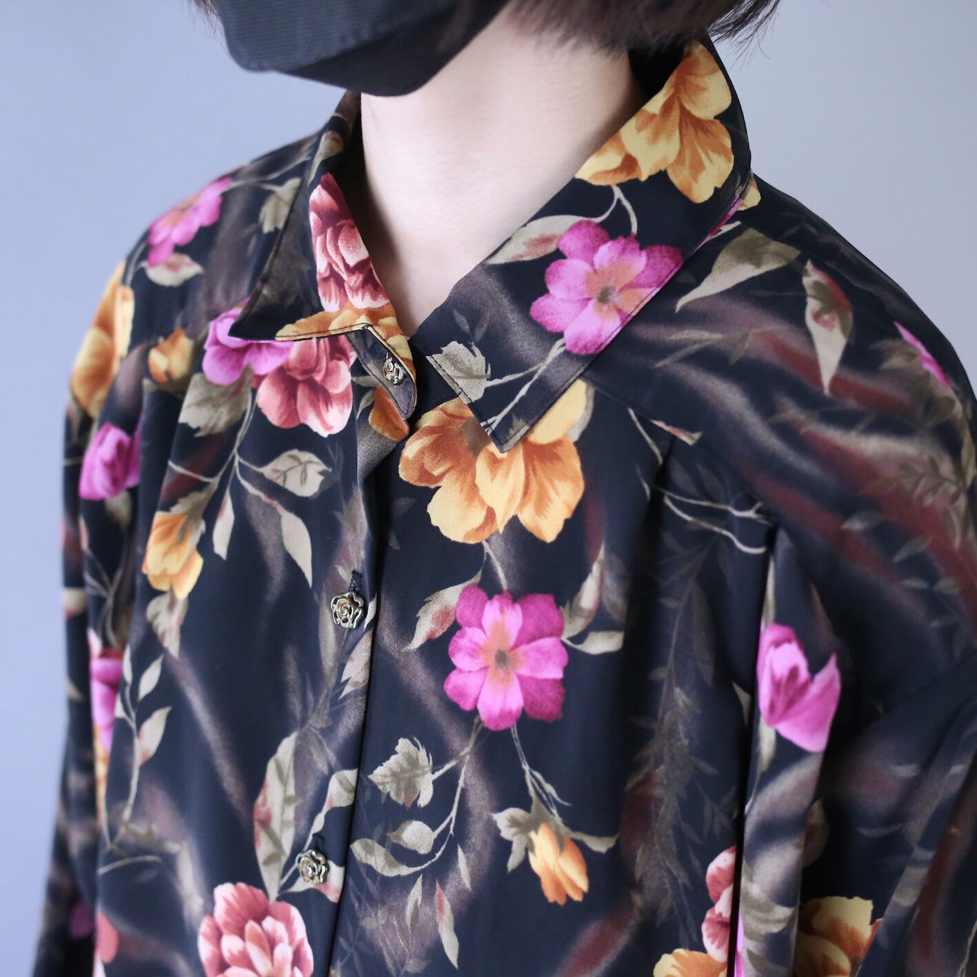 ヨーク部分にタックを施し立体的でフワッとしたシルエットに仕上がった花柄モードシャツ