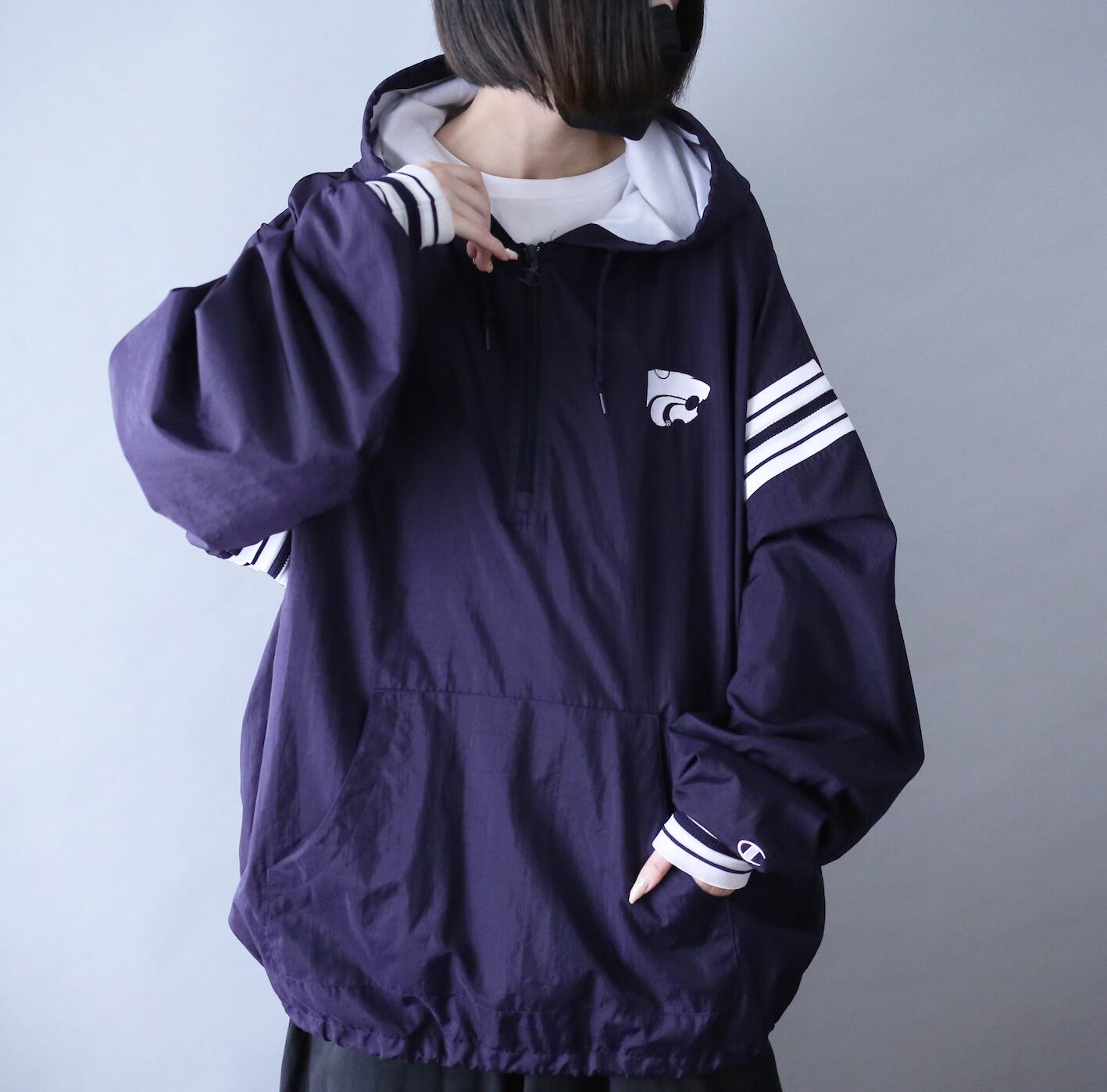 "Champion"から絶妙〜な色味に刺繍と切り替えでアクセントを加えたハーフジップ仕様のナイロンパーカー
