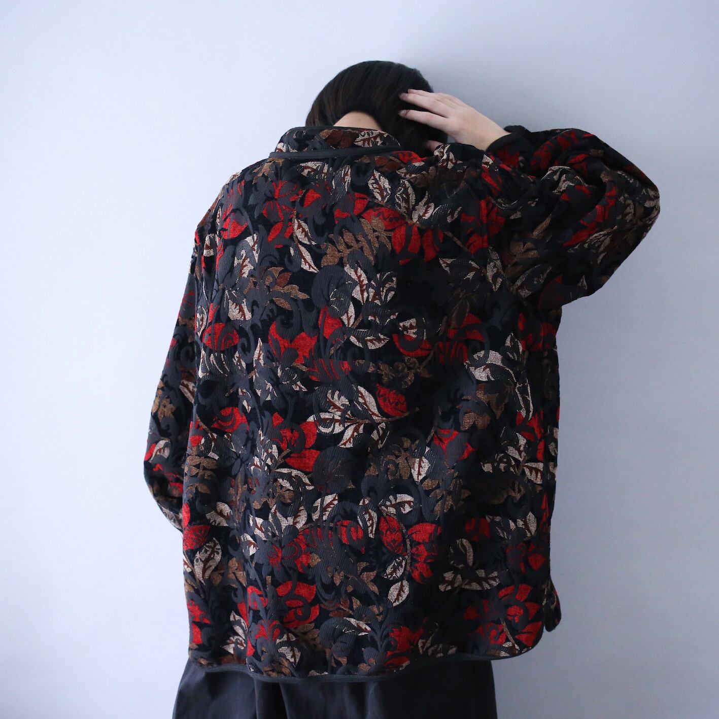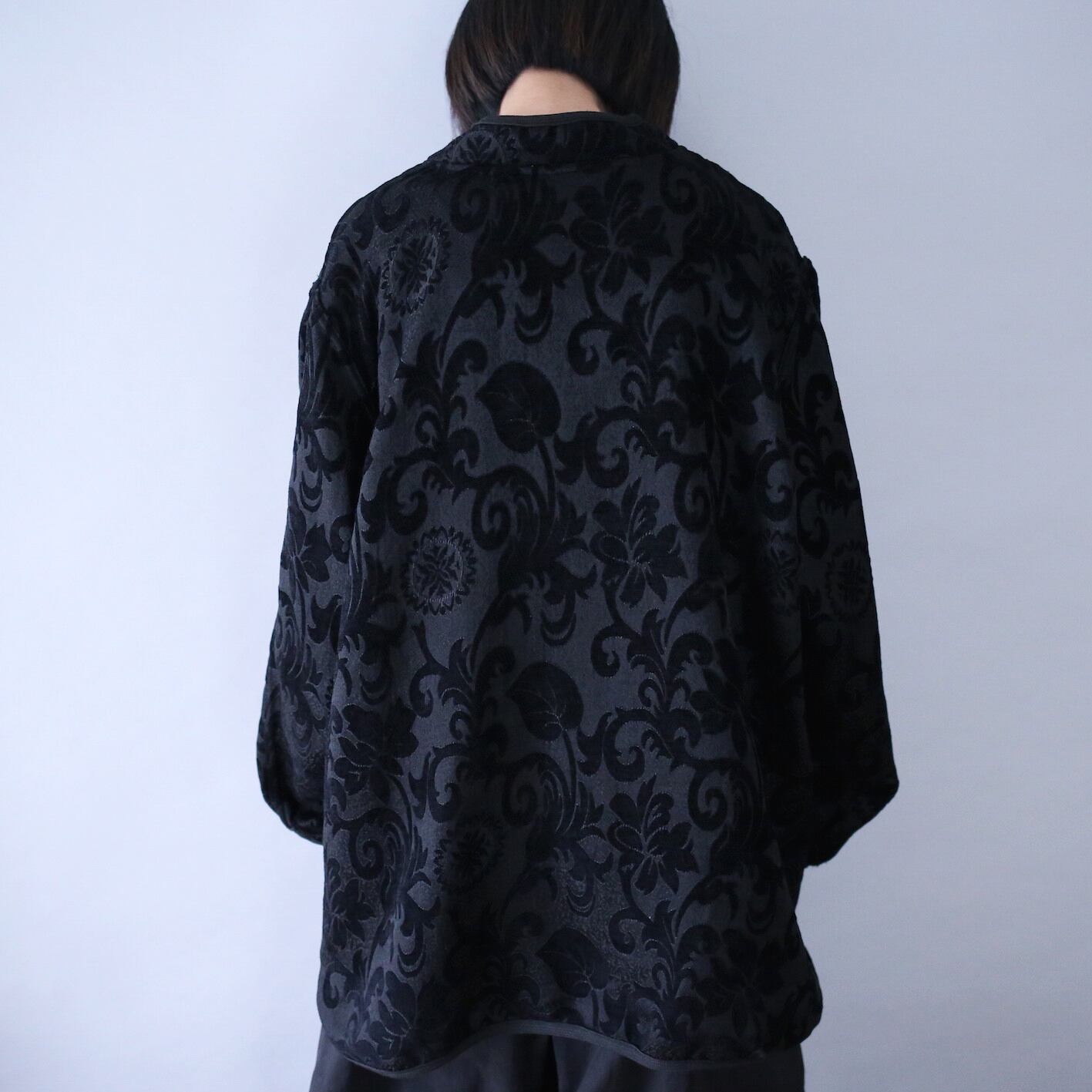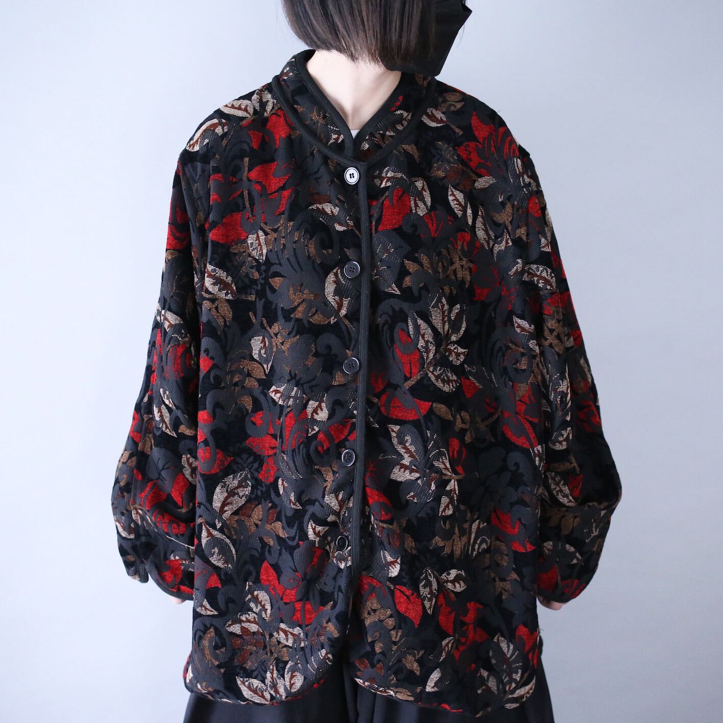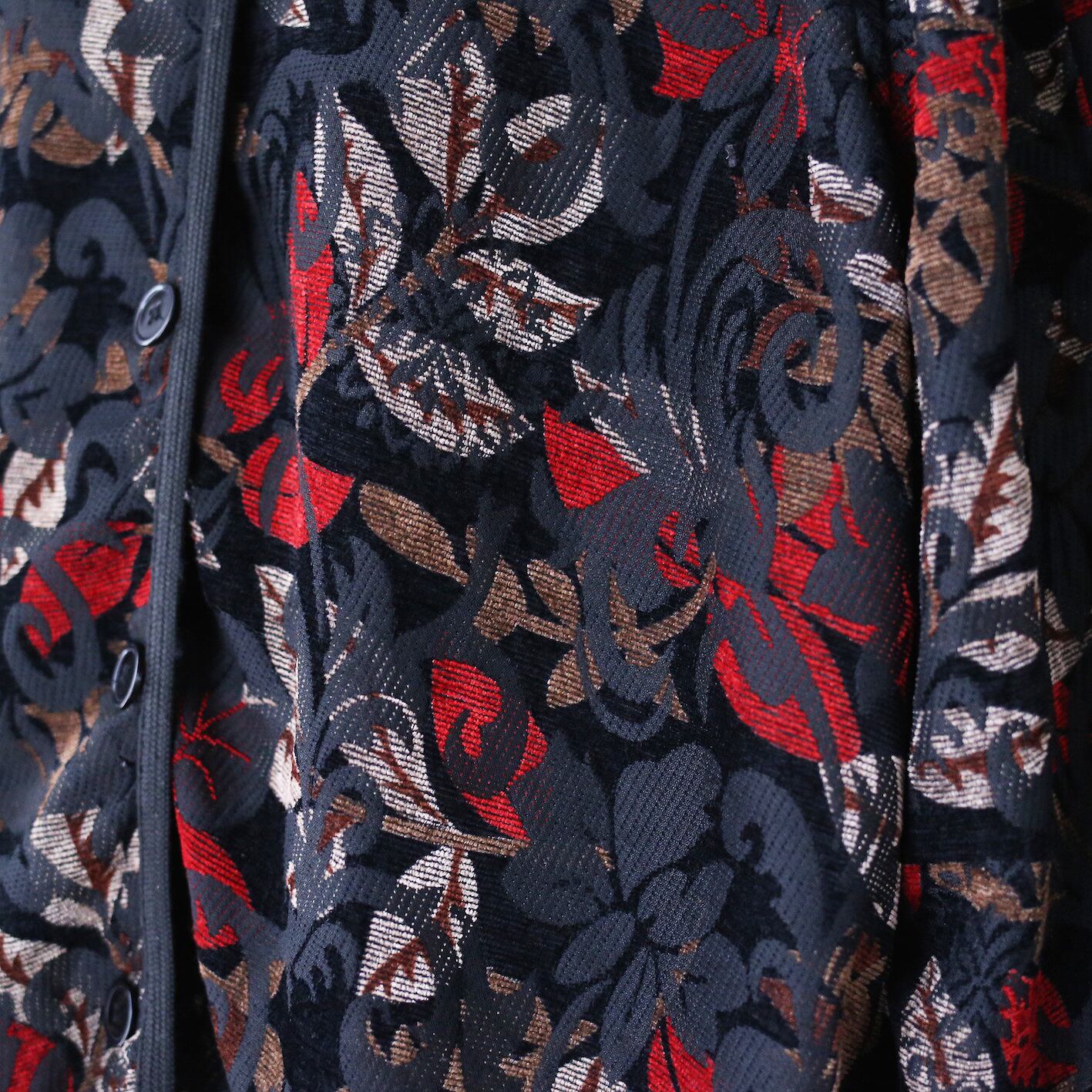 シャニールとジャガードの織りによって生み出された立体的な柄、両面共にラグジュアリーな装いに仕上がった両A面のオーバーサイズリバーシブルジャケット