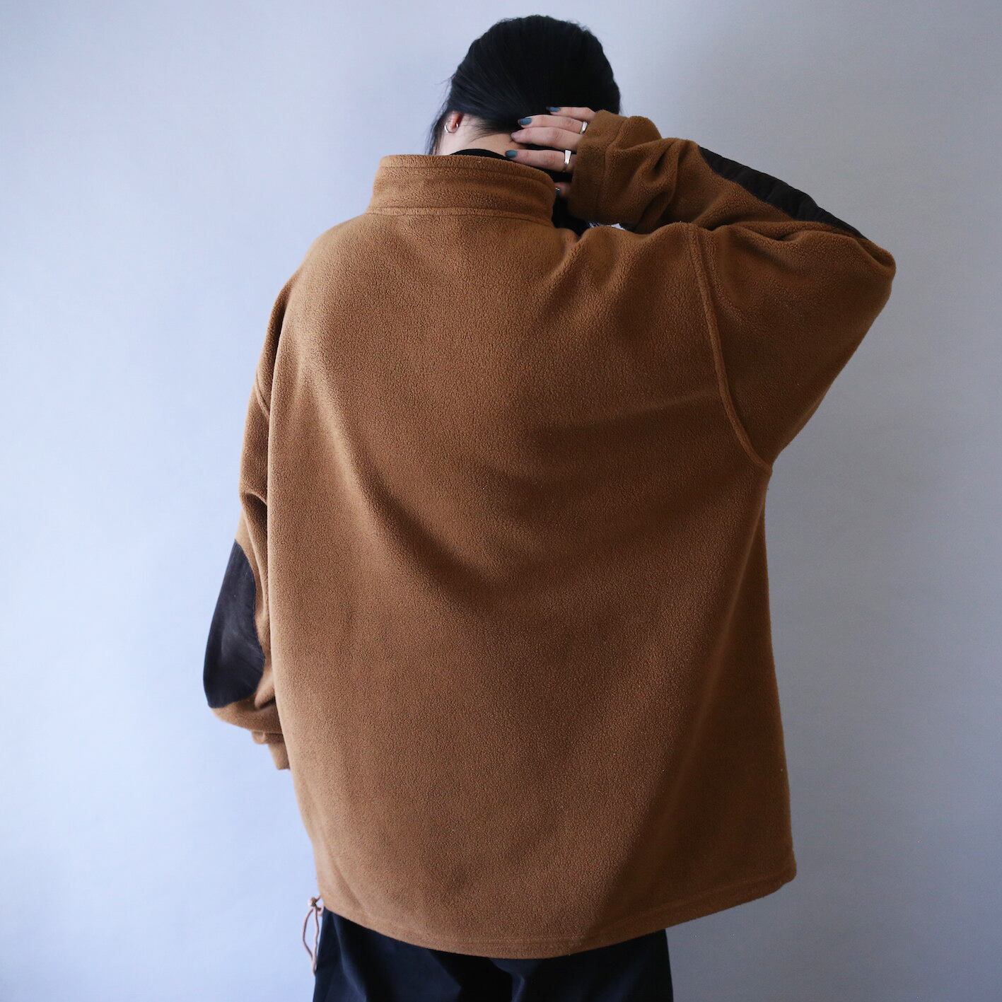 トレンドなスタイリングにハマる"ハーフジップ"、さらに古着らしいディテールであるエルボーパッチを施したフリースプルオーバー