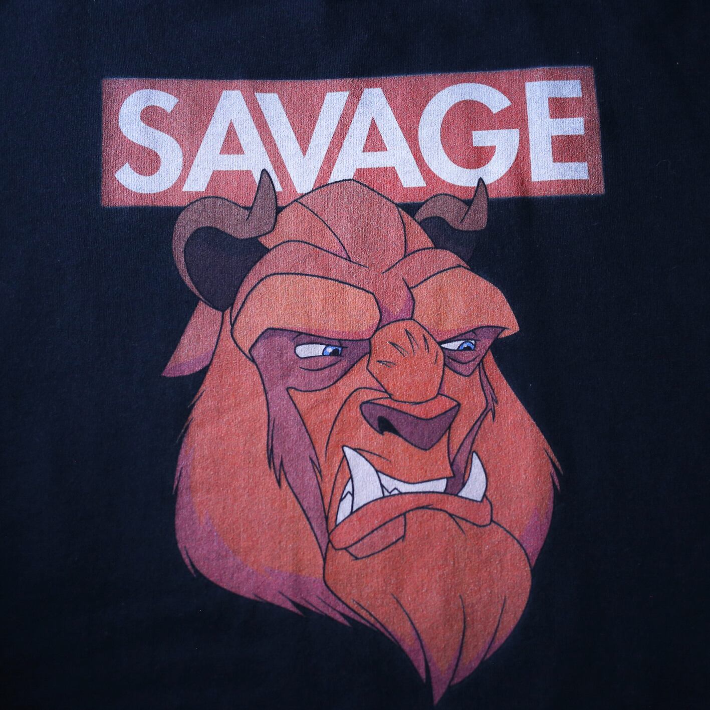 "SAVAGE(野蛮)"の一言、その下には某世界的ファンタジー作品で有名な"野獣"をプリントしたオフィシャルタグ付きのオーバーサイズスウェット