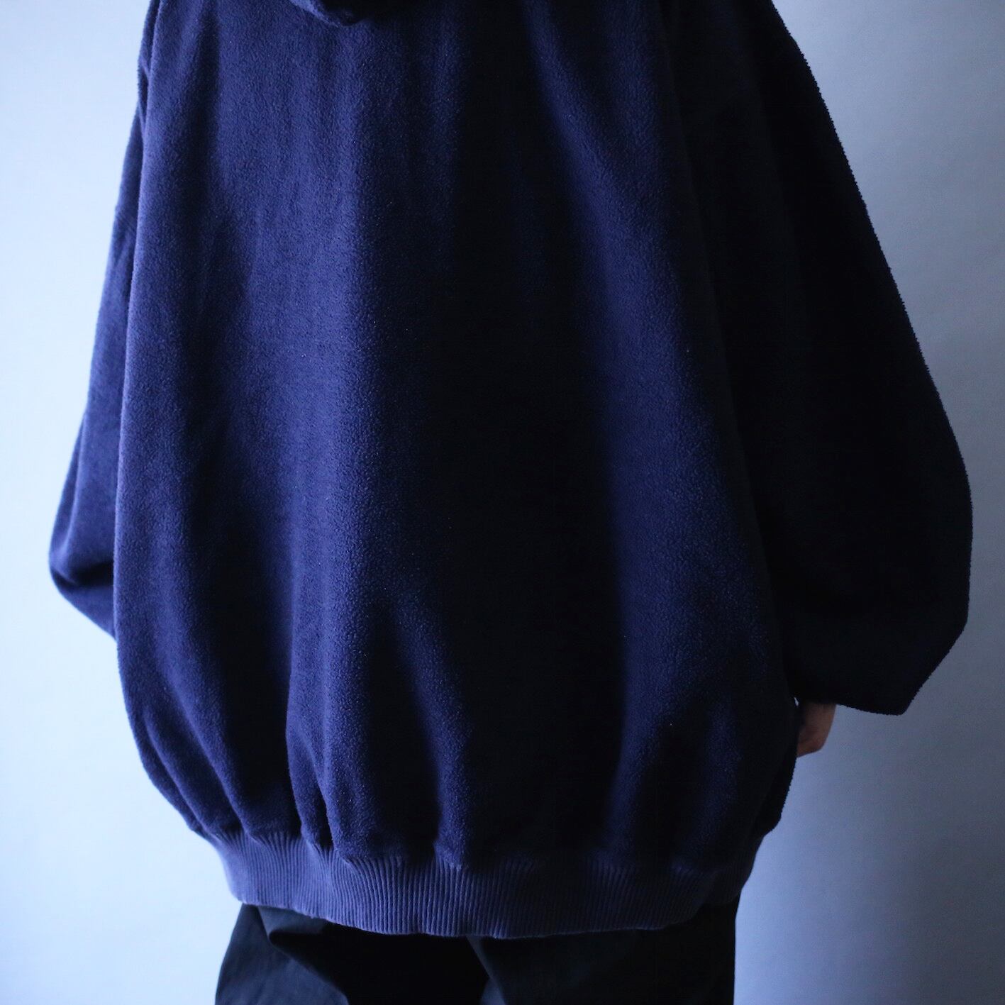 サイズはメンズ2XL相当のオーバーサイズ、着丈76cmに対して身幅79cm(縦<横)の超〜ワイドシルエット、横にたっぷりと生地を使っている分被った際の"ガバッと感"がとにかく素晴らしい◎