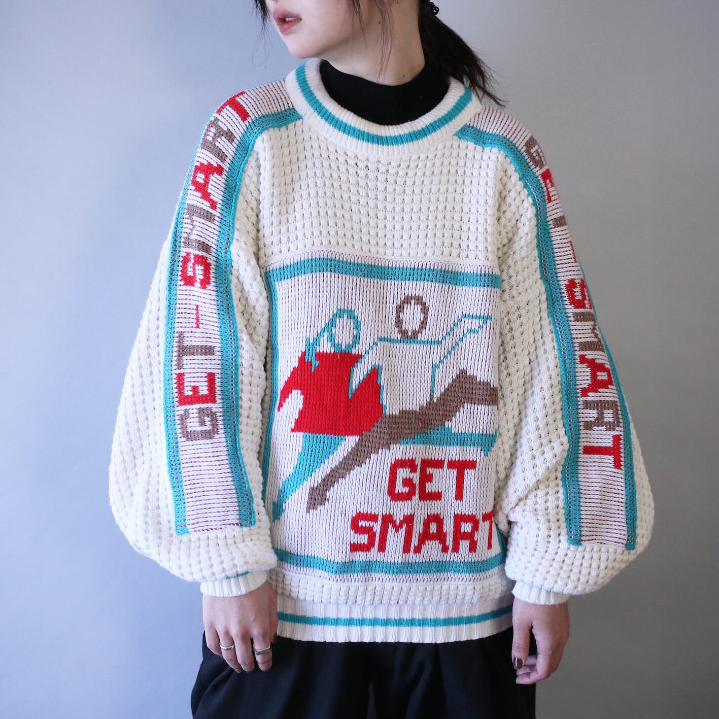中央には大きく脚を開き飛び跳ねるような仕草の男女二人、その下と両袖には"GET SMART"、アメリカのスラングで"きちんとする"という意味の他に"生意気を言う"などの意味があるらしくどちらかと言うと後者なイメージが強い仕上がり具合